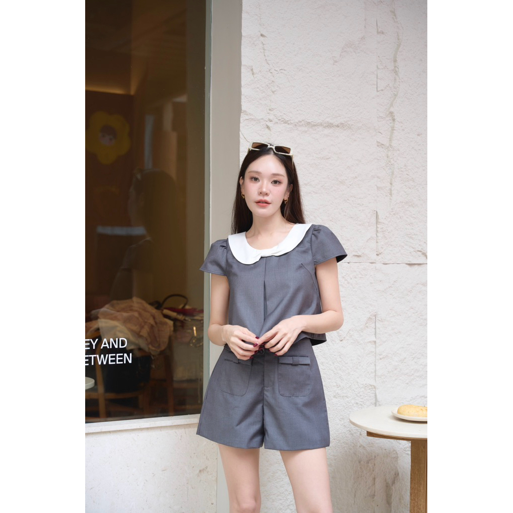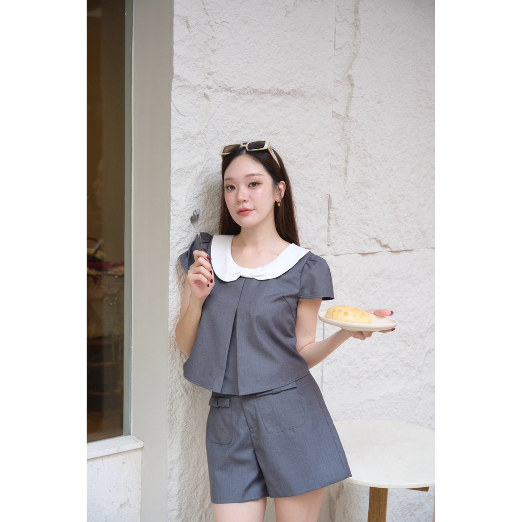 ร228 “ชิโนเซท” งานเซ็ทผ้าชิโนผสมคอตตอนแบบเก๋ ลุคเกาหลีสุดๆ เสื้อทรงจับจีบช้อน