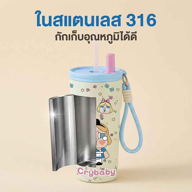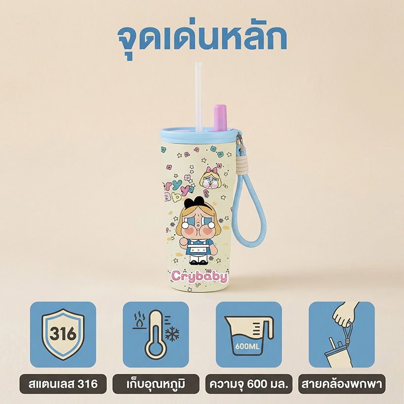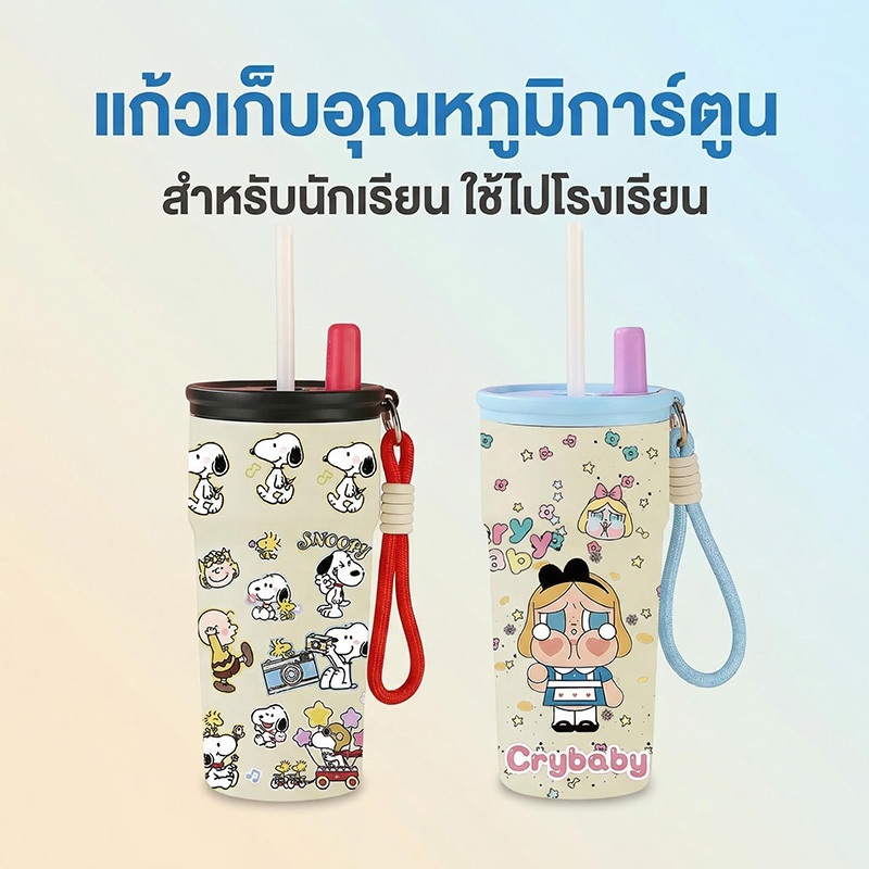 ขนาดความจุ600ml แก้วเก็บอุณหภูมิ สแตนเลส316 แก้วน้ำเก็บความเย็น ลายการ์ตูน มีหลอดดูด พร้อมหูจับ แก้วเด็ก แก้วกาแฟ