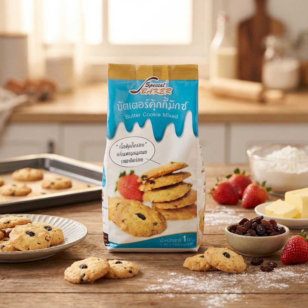 แป้งบัตเตอร์คุ้กกี้มิกซ์ แป้งคุกกี้สำเร็จรูป ตราสเปเชี่ยล เบเกอร์ Special Baker Butter Cookie Mixed 1Kg