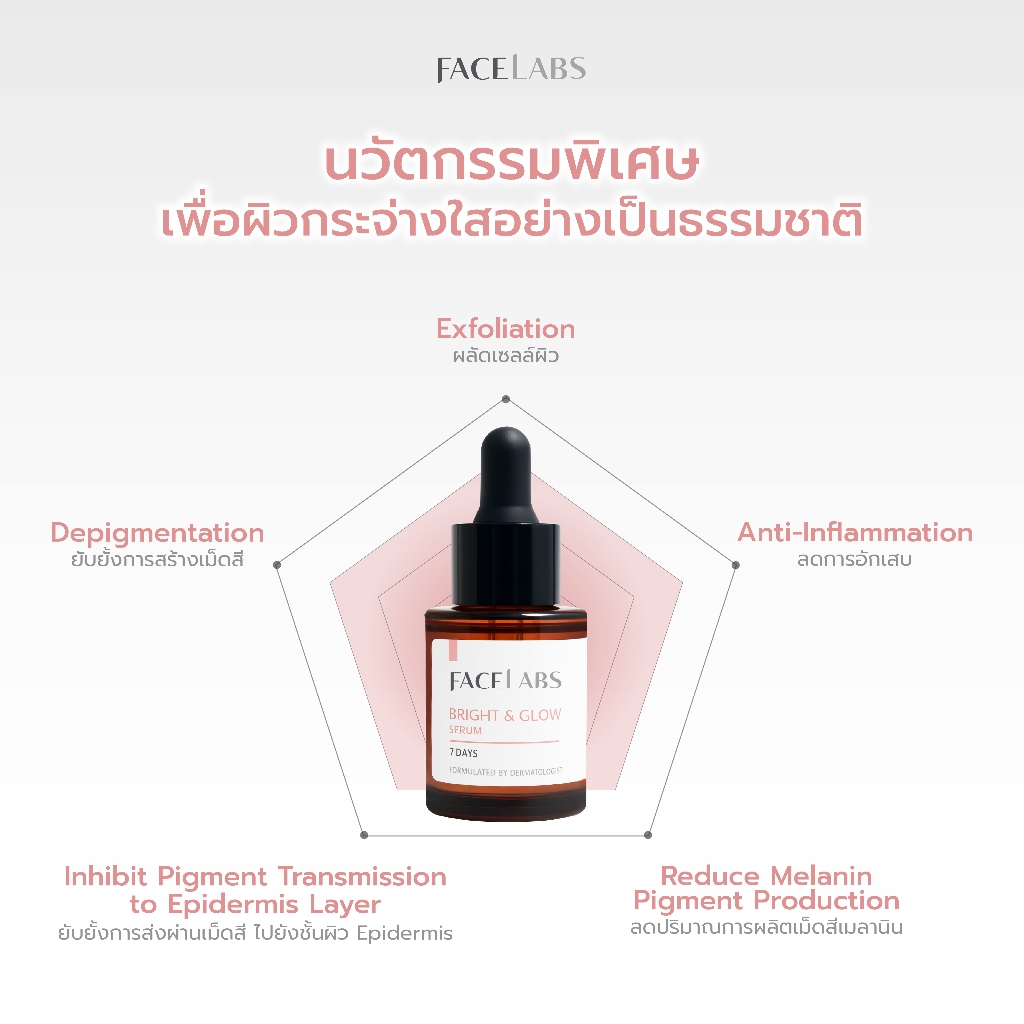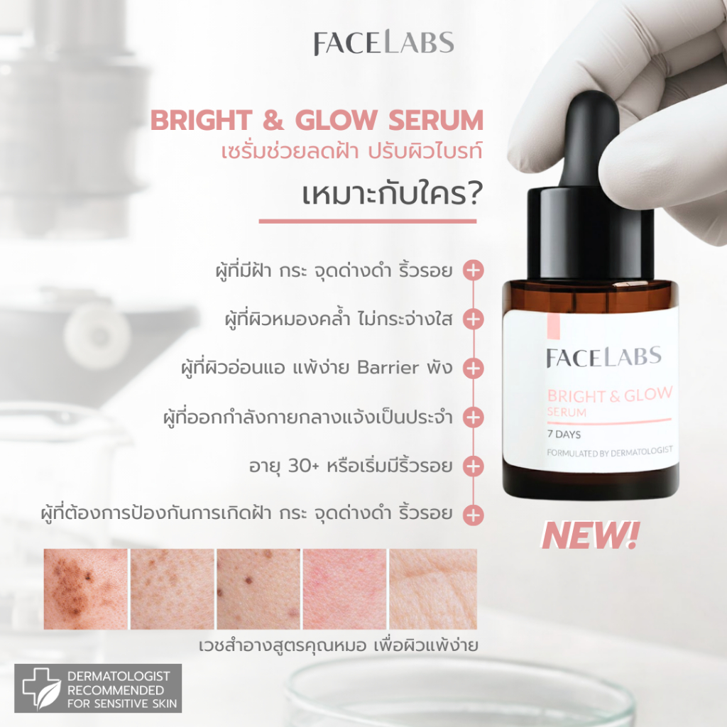 เซรั่มผิวกระจ่างใส ลดฝ้า กระ จุดด่างดำ FACELABS Bright & Glow Serum 15 ml สำหรับผิวบอบบางแพ้ง่าย