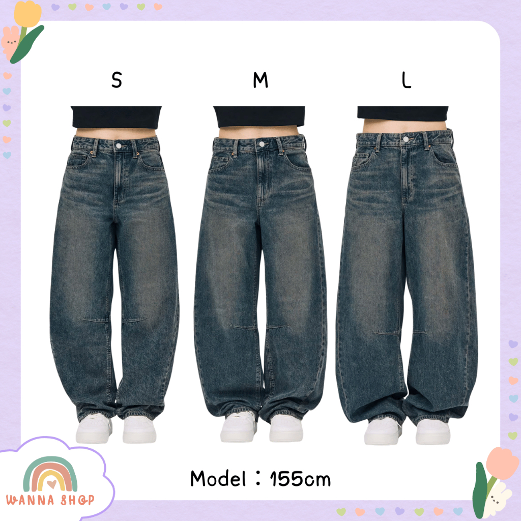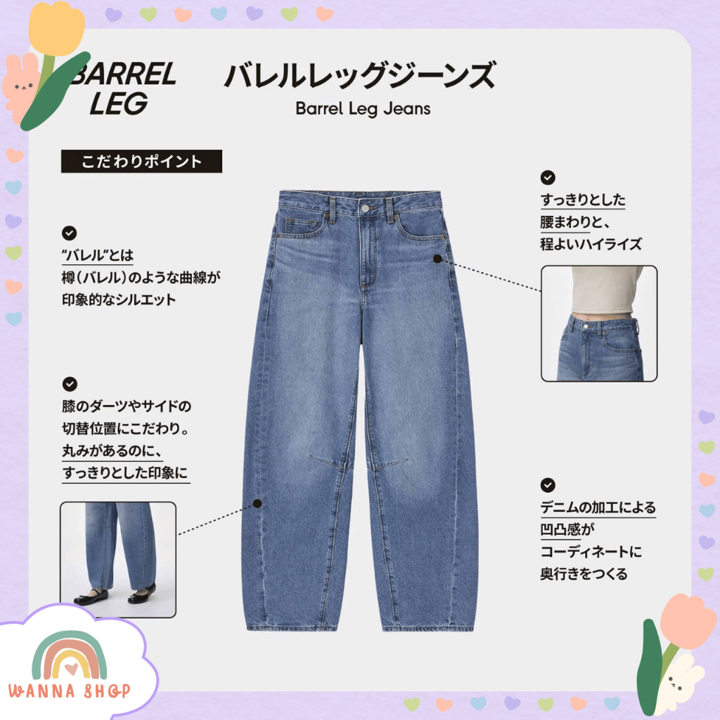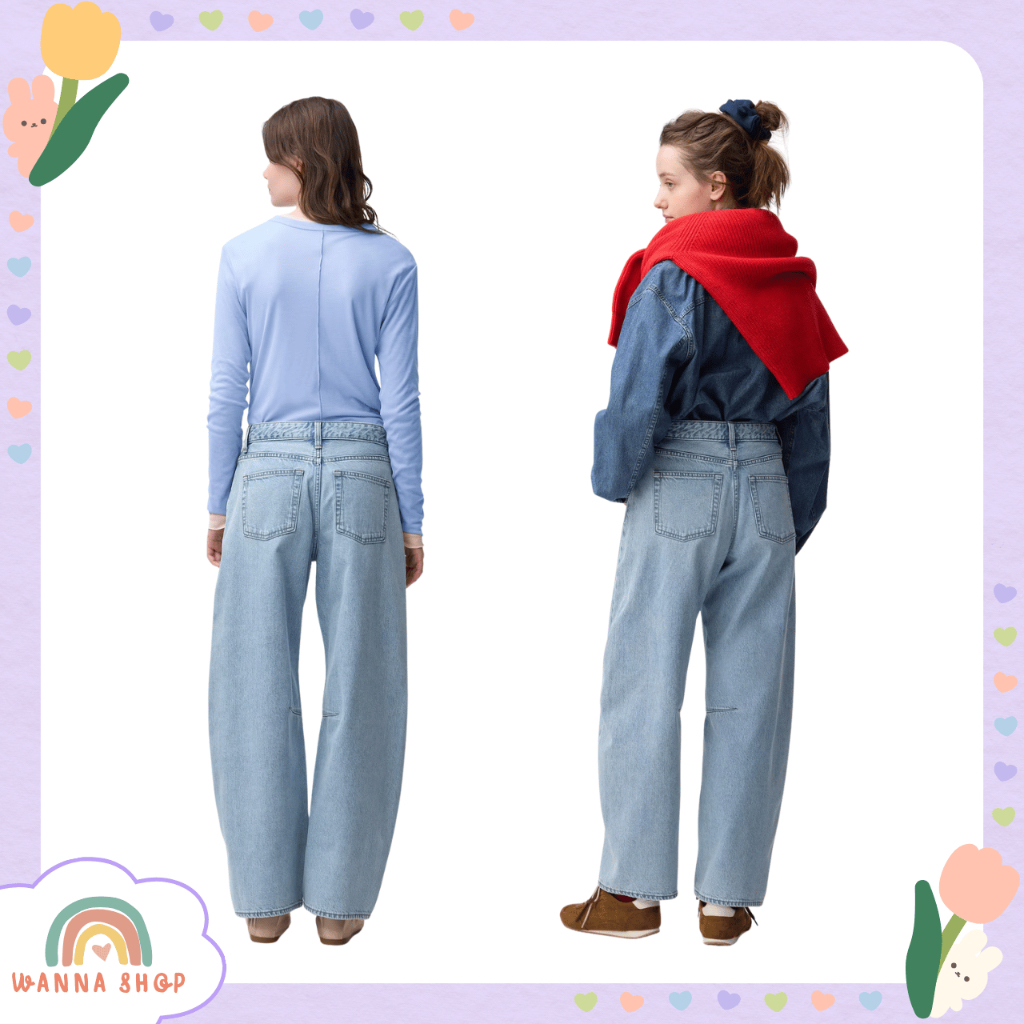 พร้อมส่ง🔥ของแท้ GU Barrel Leg Jeans กางเกงยีนส์ ใส่สบาย ทรงสวย ใส่แล้วดูสูงขายาว