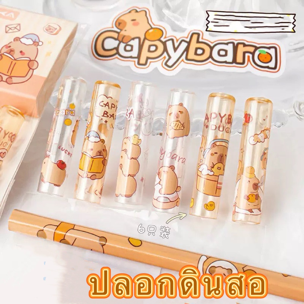 ปลอกดินสอ ปลอกดินสอป้องกันหัวดินสอ ลายคาปิบาร่า 6ชิ้น/แพ็ค