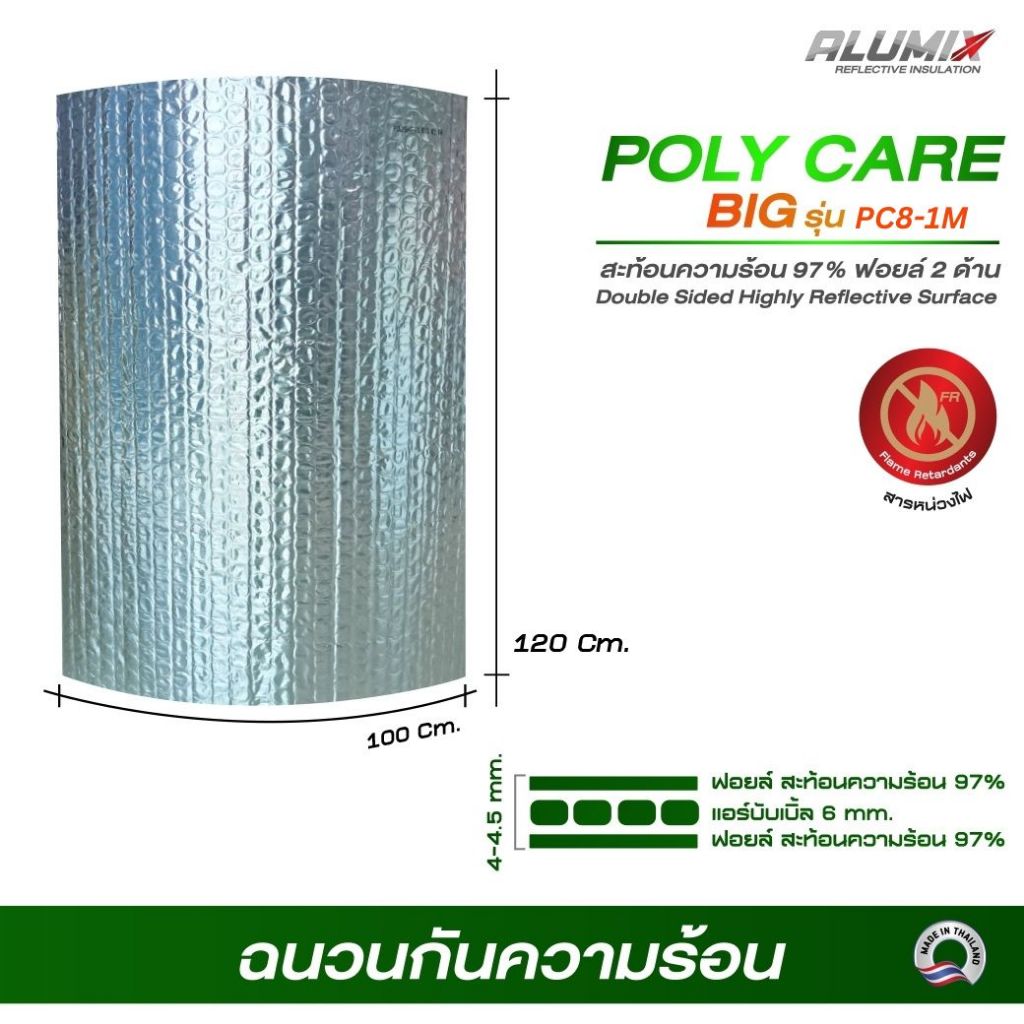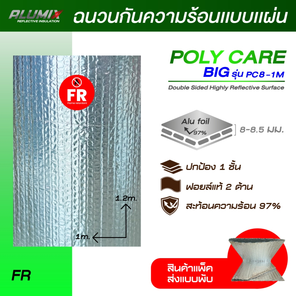 Poly care ฉนวนกันความร้อนแบบแผ่น PC8 -1M 120 ซม. x 100 ซม. 8 มม.สะท้อนความร้อน97% **สั่งได้10แผ่น**