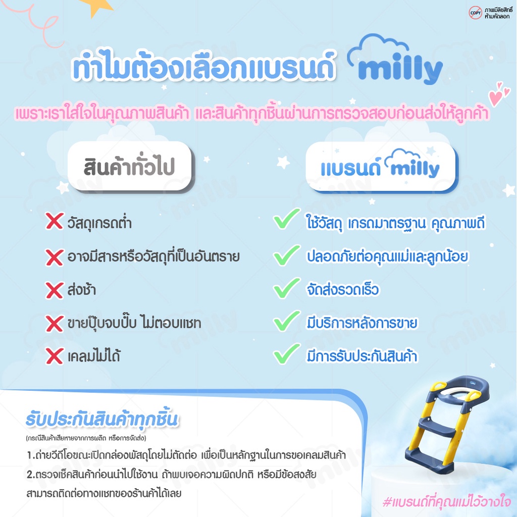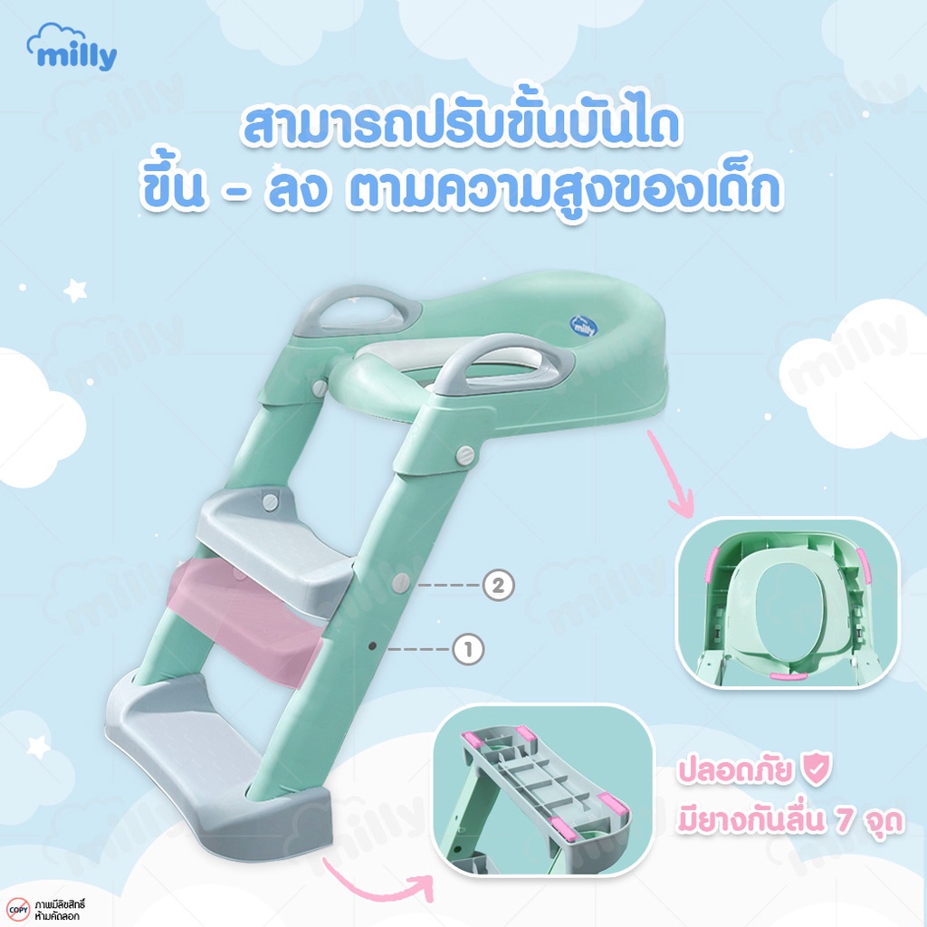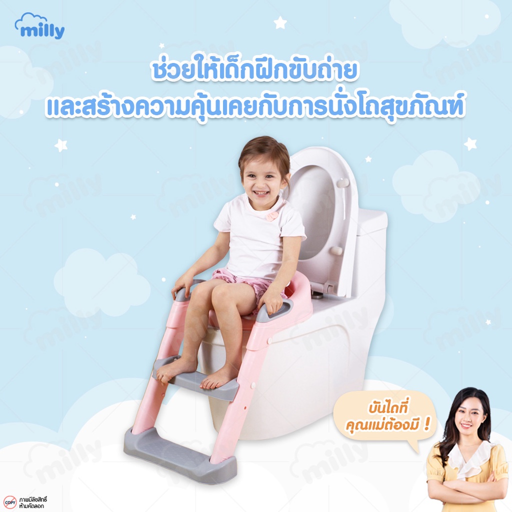 Milly บันไดเข้าห้องน้ำ เบาะนุ่ม นั่งสบาย ที่รองนั่งสำหรับเด็ก ฝารองชักโครก บันไดปีนชักโครก Potty Training Seat