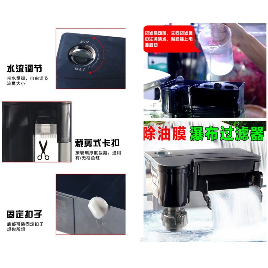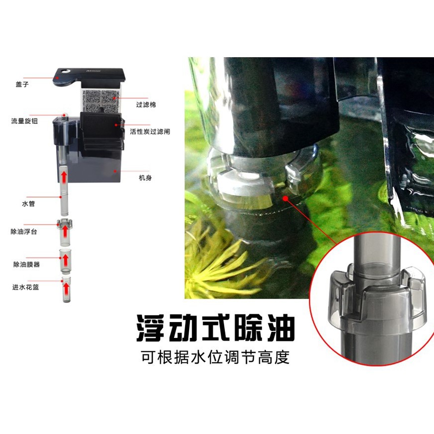 Atman กรองแขวน พร้อมสกิมเมอร์ดูดหน้าน้ำ ดีไซน์เรียบดูสบายตา ด้วยการออกแบบท่อดูดน้ำเข้าร่วมกับท่อสกิมเมอร์