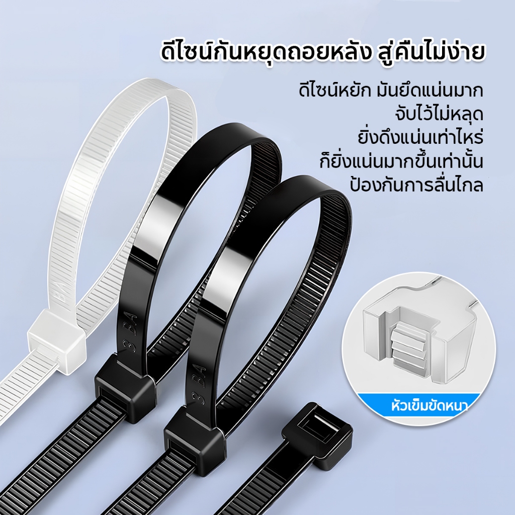 เคเบิ้ลไทร์ ถุงละ100เส้น สายรัด Nylon Cable Tie สีขาว-ดำ หนวดกุ้ง สายรัดสายไฟ มีให้เลือกหลากหลายขนาด พร้อมส่งราคาโรงงาง