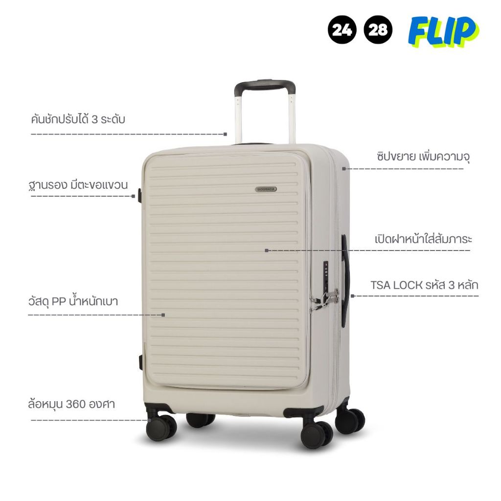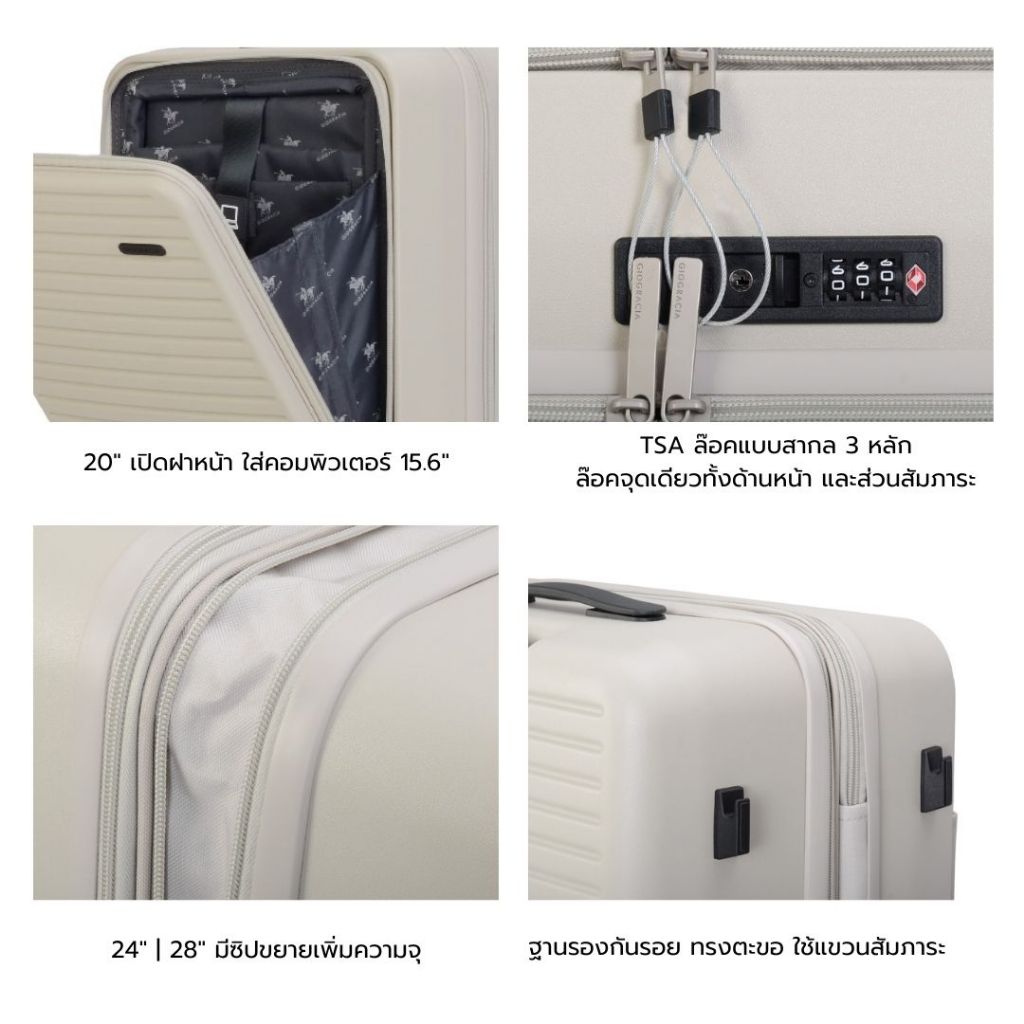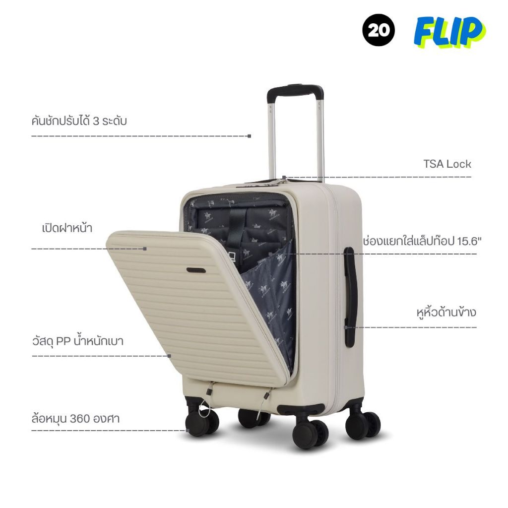 Giogracia Polo Club กระเป๋าเดินทางเปิดฝาหน้าได้ รุ่น FLIP (GIO12) วัสดุ ABS ใส่คอม 15.6" TSA Lock ขยายจุเพิ่ม [สโมค]