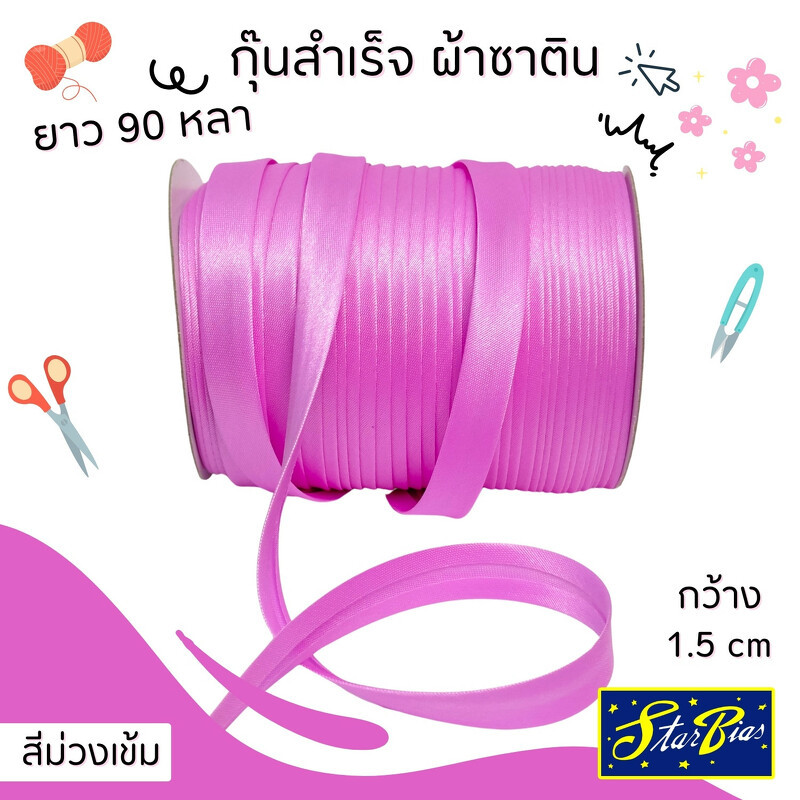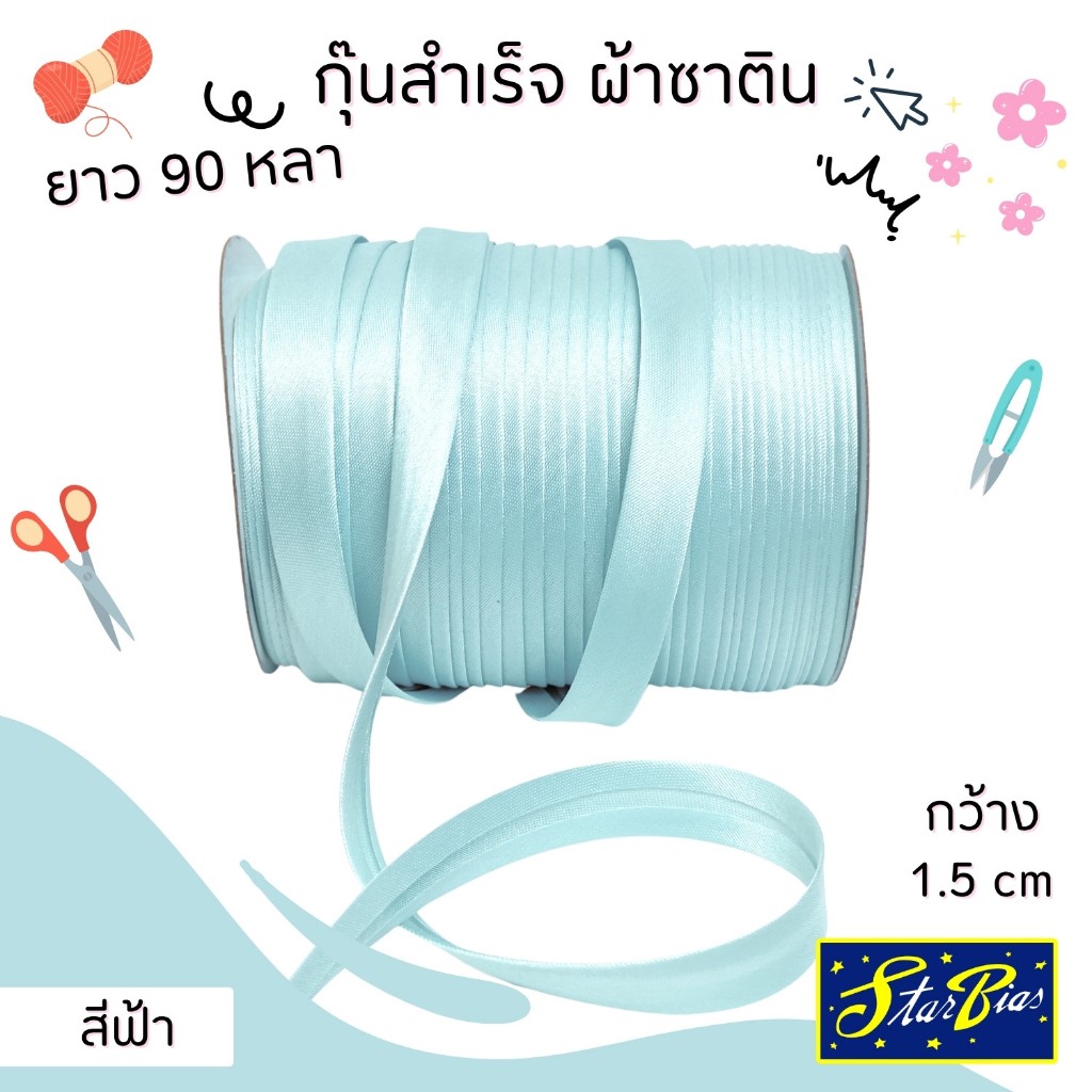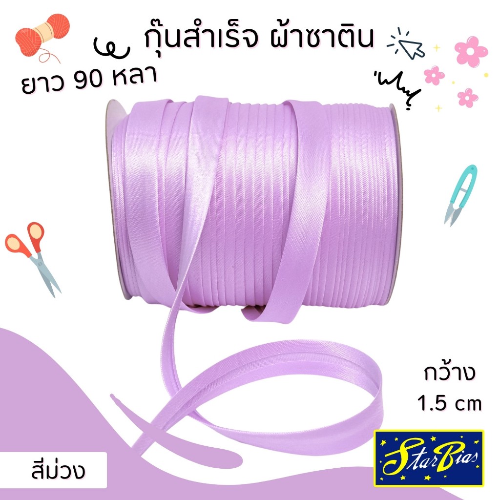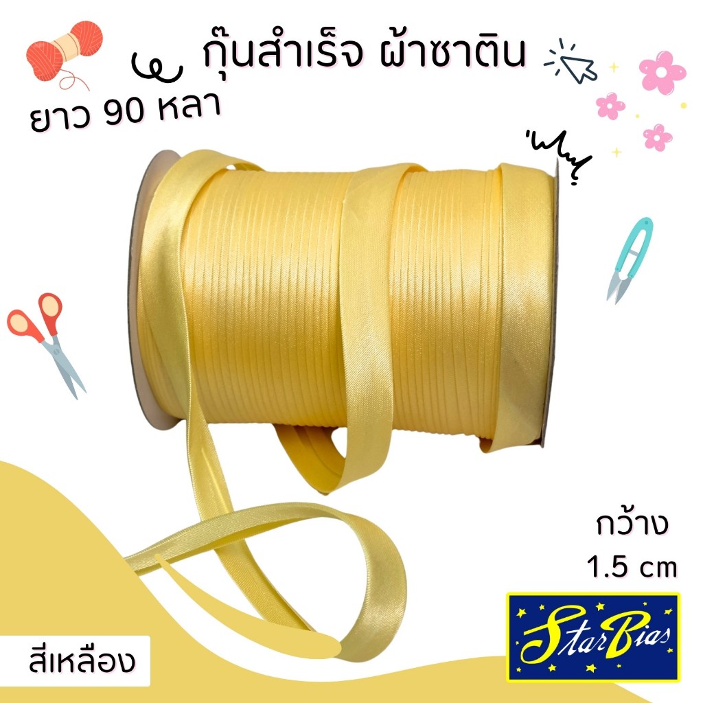 ผ้ากุ๊นซาติน ยาว90หลา กว้าง1.5ซม.แบบเรียบตกแต่งขอบเสื้อผ้า อุปกรณ์ตกแต่งเสื้อผ้า RIBBIN01วาริสมุสลิม