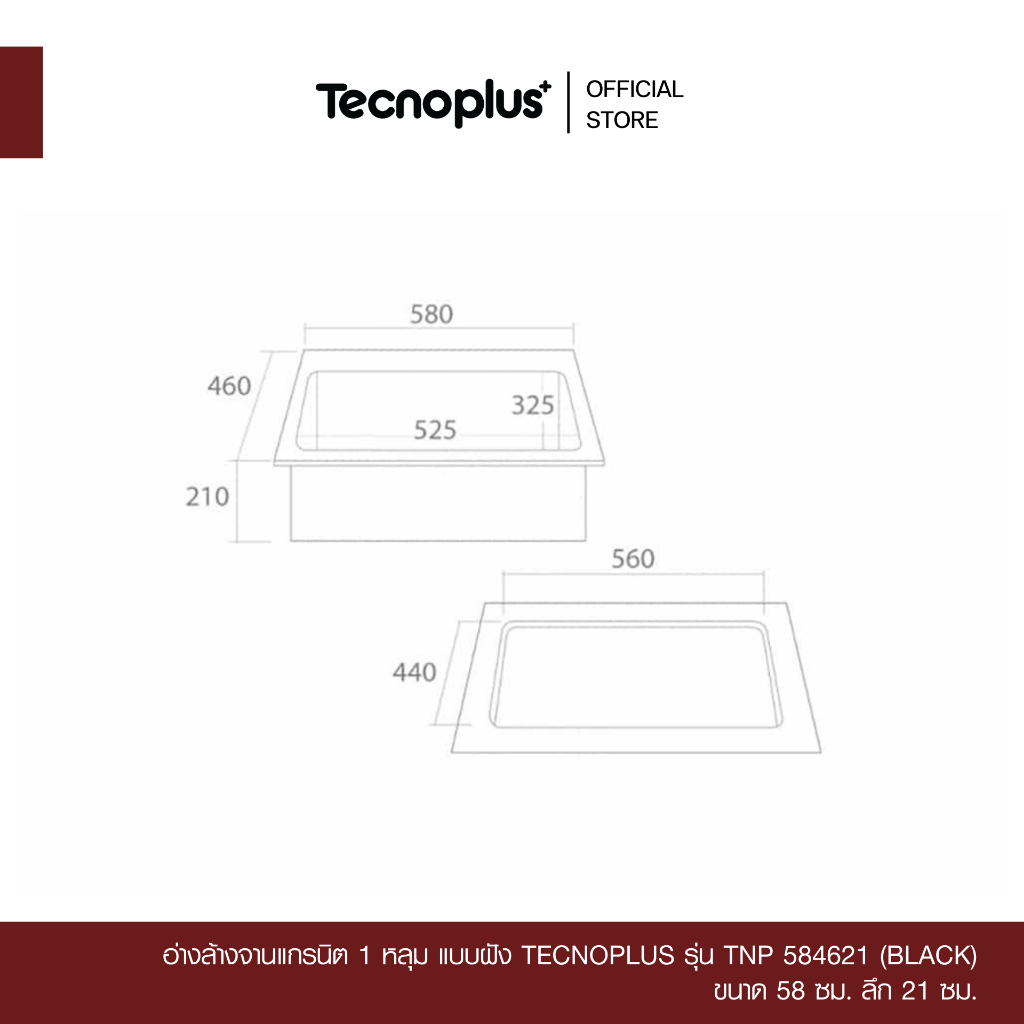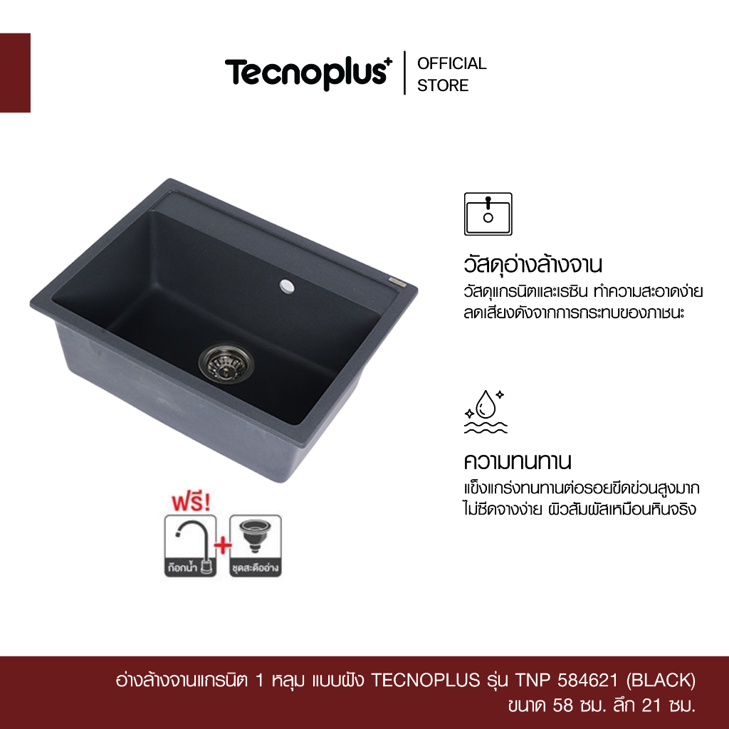 อ่างล้างจานแกรนิต 1 หลุม แบบฝัง Tecnoplus รุ่น TNP 584621 ขนาด 58 ซม. ลึก 21 ซม. แถมฟรีก๊อกซิงค์ สีดำ(ยืน) ZI18-B