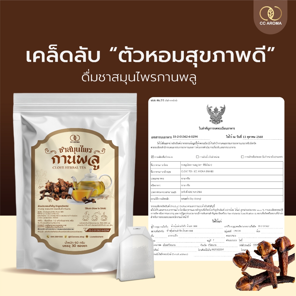 ชาสมุนไพรกานพลู Cloved Herbal Tea 30 ซอง สำหรับดื่มได้ทุกวัน ชาตัวหอม ชากานพลู (ชนิดซอง)