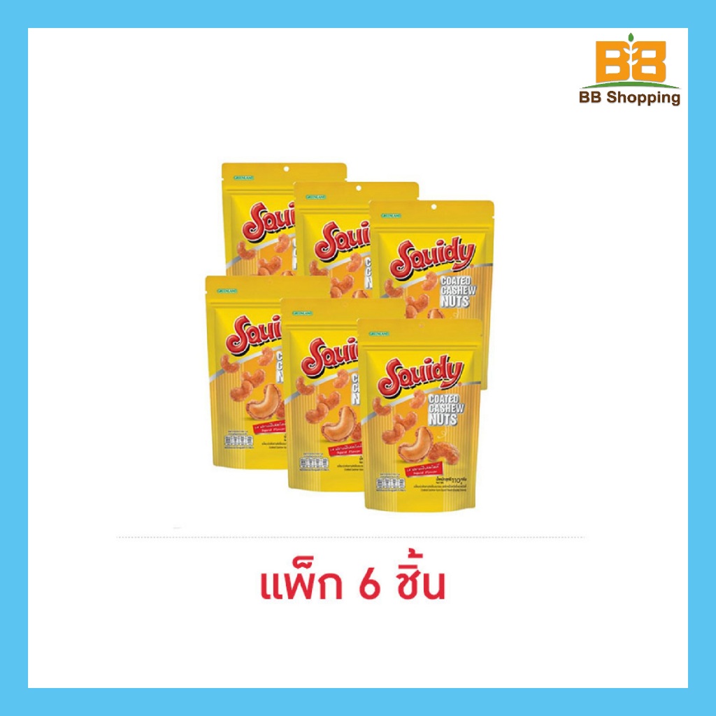 สควิดดี้ เมล็ดมะม่วงหิมพานต์อบกรอบเคลือบรสปลาหมึก 110 กรัม (แพ็ก 6 ชิ้น)
