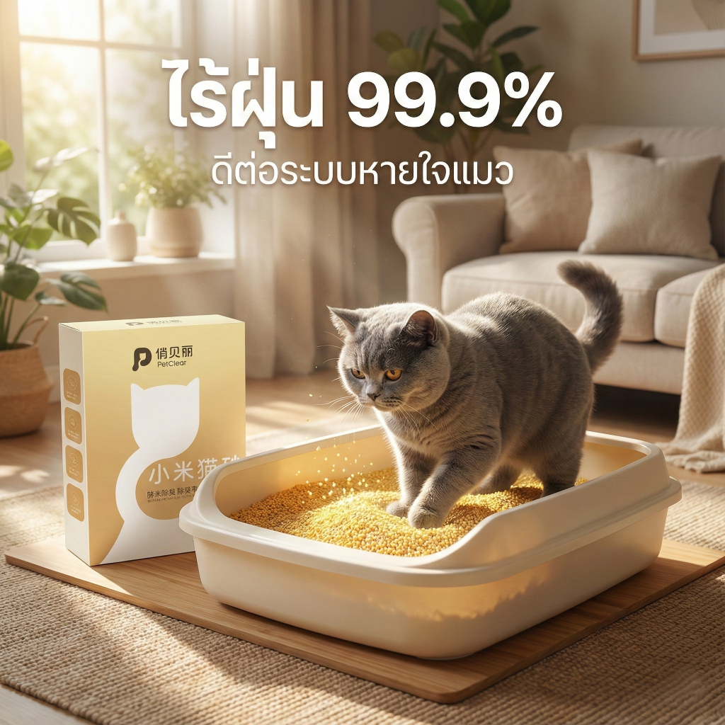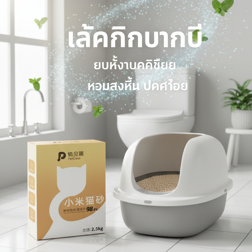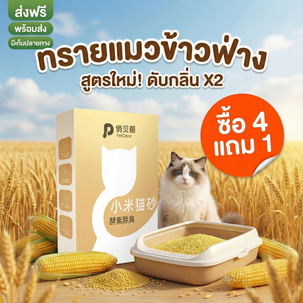 [แจกอกไก่ฟรี] PetClear ทรายแมวข้าวฟ่าง 6 ลิตร (ไม่ใช่ทรายแมวเต้าหู้) ทิ้งชักโครกได้ ไร้ฝุ่นจับก้อนเร