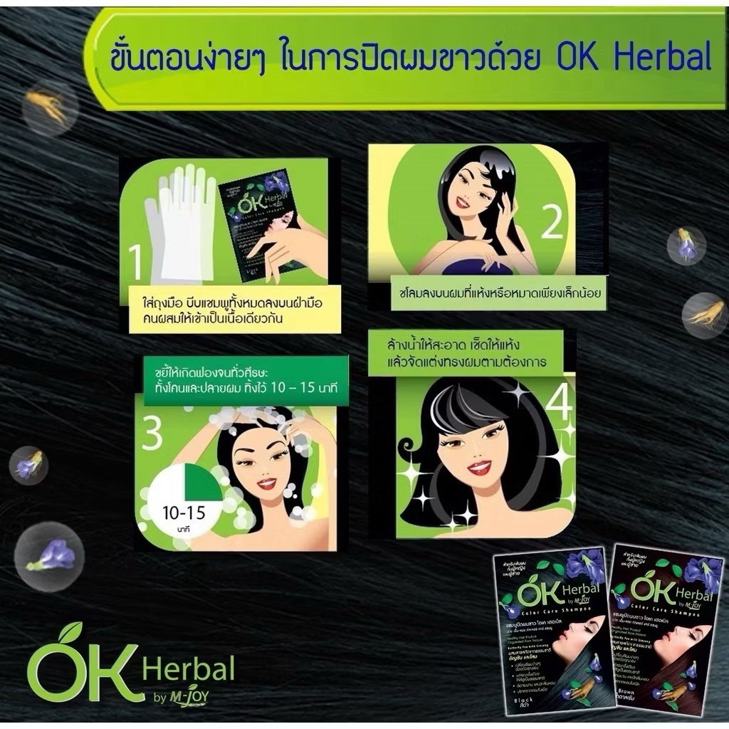 แชมพูปิดผมขาว โอเค เฮอเบิ้ล(1 กล่อง 12 ซอง)มีกล่อง 100 % บาย เอ็มจอย คัลเลอร์ แคร์ แชมพู OK Herbal Color Care Shampoo