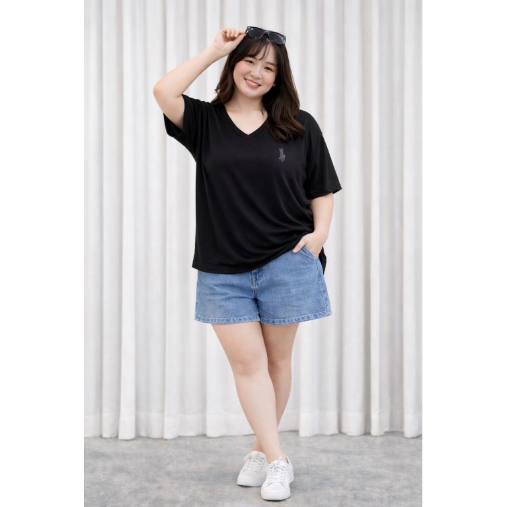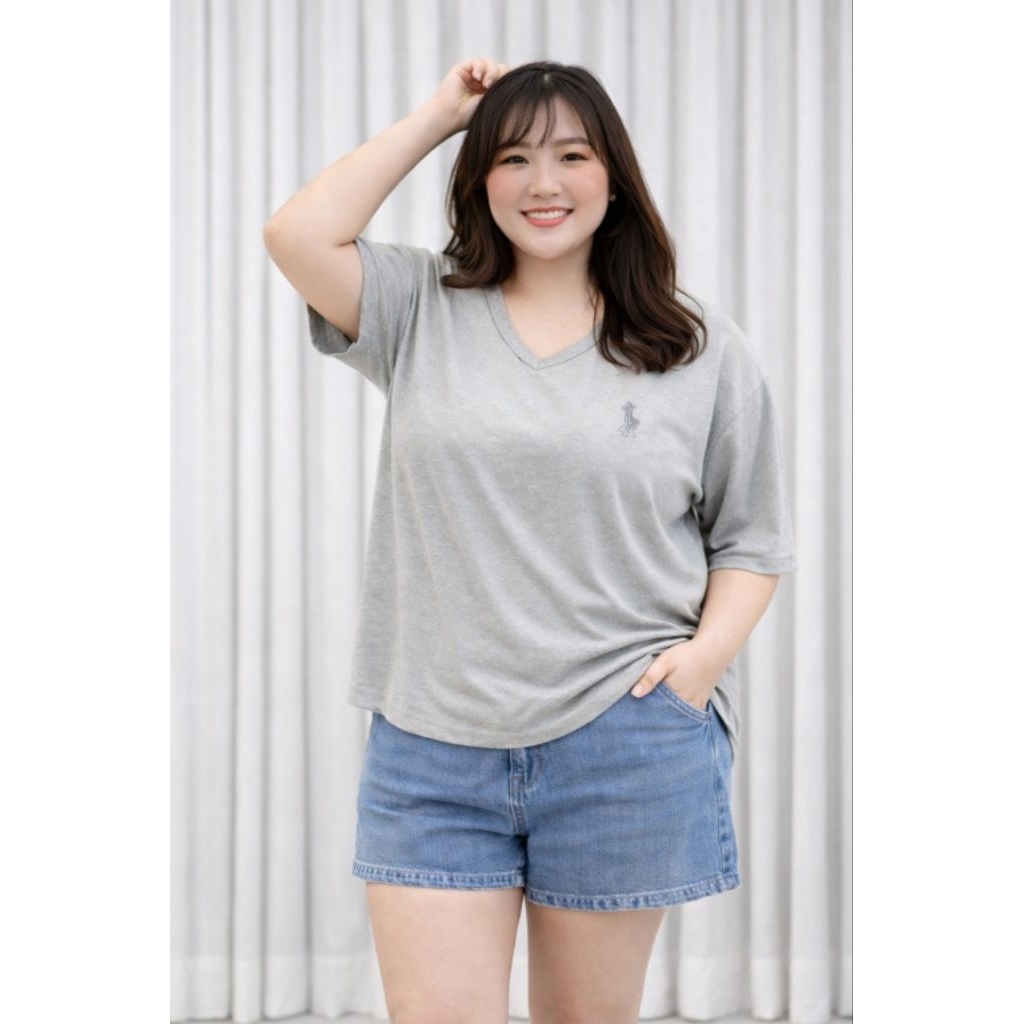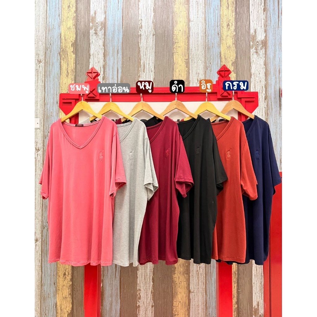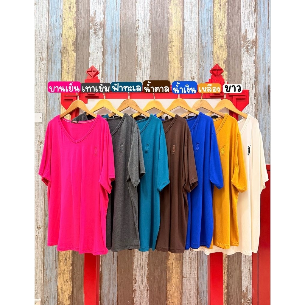เสื้อยืดผ้าเรย่อนคอวี ปักม้า ผ้ายืดนุ่มนิ่ม อก 54 นิ้ว+++