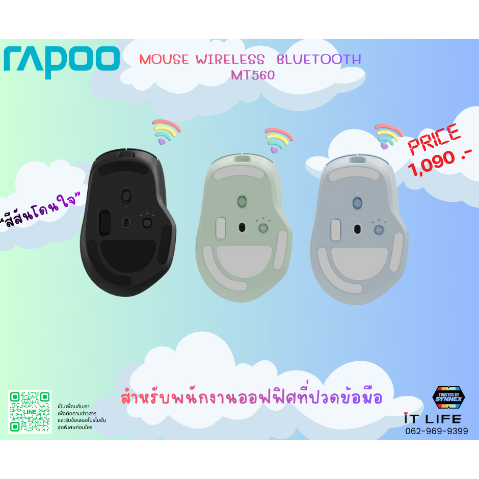 Mouse wireless Bluetooth ยี่ห้อ rapoo รุ่น MT560