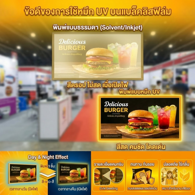 รับพิมพ์ Backlit Film ฟิล์มป้ายไฟ ตู้ไฟ พิมพ์ UV สีสด ทะลุไฟ ขนาด A4 A3 A2 A1