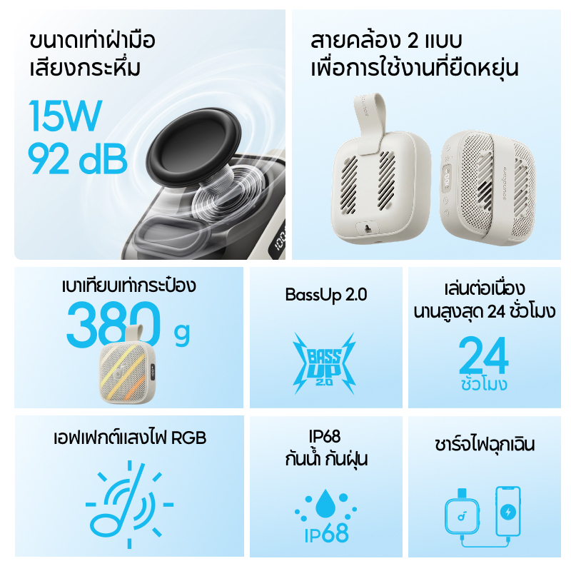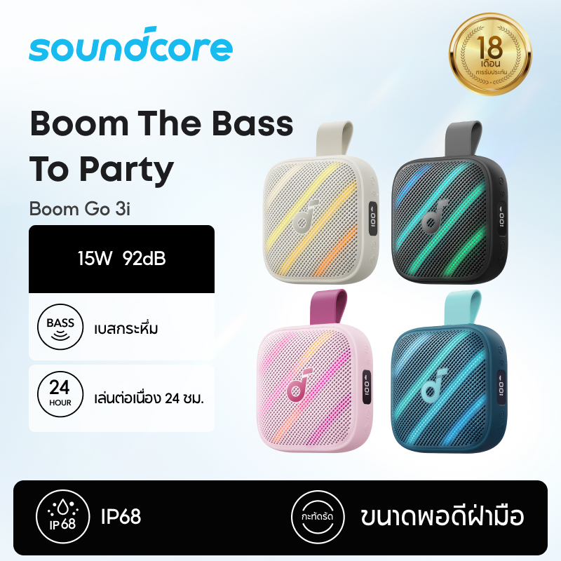 【ลำโพงแบบ Boom】 ANKER soundcore Boom Go 3i ลำโพง| กันน้ำและกันฝุ่น IP68| ใช้งานได้นานสูงสุด 24 ชั่วโมง| ลำโพงพกพา|มาพร้อมเอฟเฟกต์ไฟสุดเท | BassUp 2.0| Emergency Charging| Bluetooth 6.0