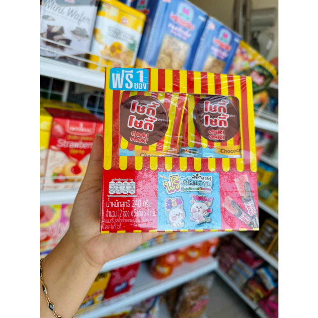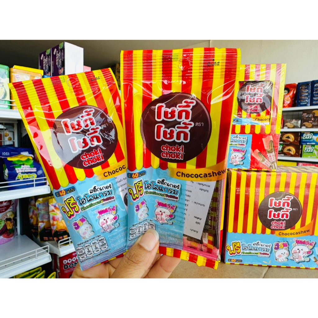 Choki Choki โชกี้ โชกี้ ขนมครีมรสช็อคโกแลตผสมเม็ดมะม่วงหิมพานต์ (ยกกล่อง 12 ซอง) น้ำหนักสุทธิ 240 กรัม