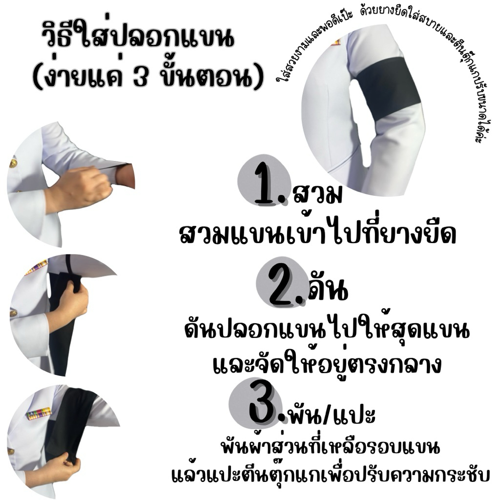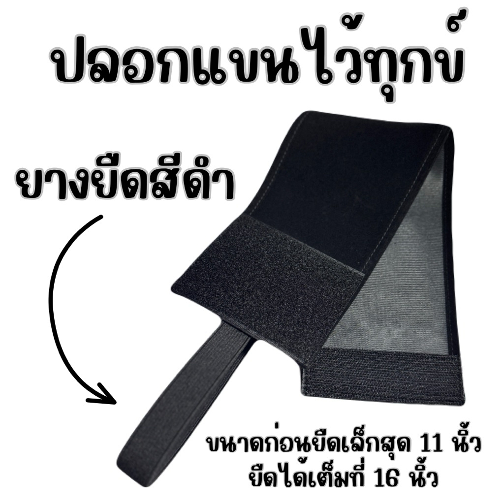 ปลอกแขนดำไว้ทุกข์ กำมะหยี่ แบบตีนตุ๊กแก ยางยืด ปรับขนาดได้
