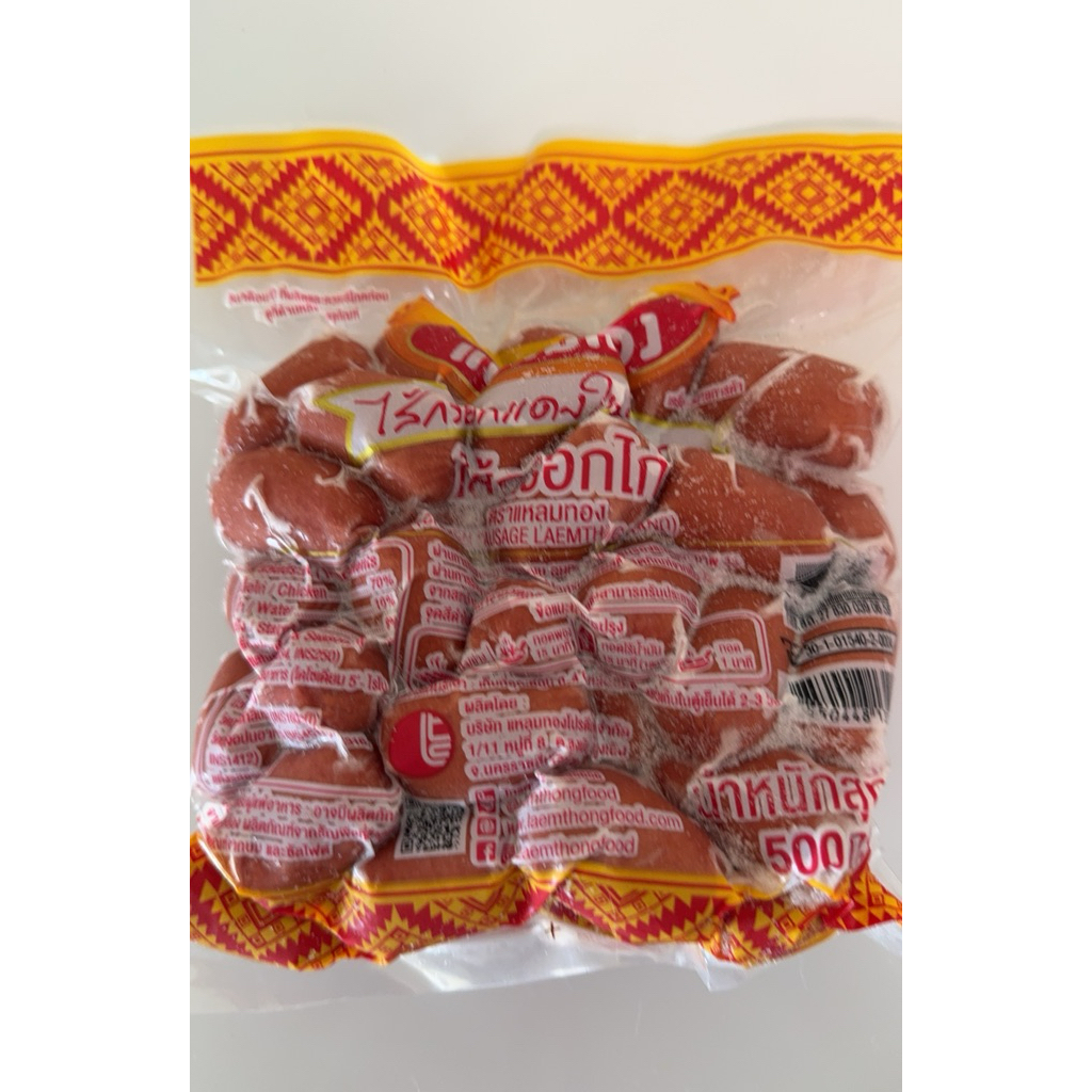 🔥ส่งด่วน1วัน 🔥[ใส้กรอกแดง แบบสั้น แหลมทอง ขนาด 500 กรัม แช่แข็ง] ไส้กรอกแดงในตำนาน