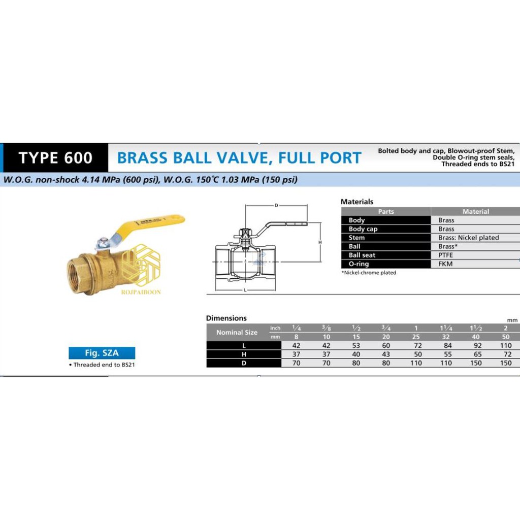 บอลวาล์ว ทองเหลือง Kitz รุ่น SZA 1/4 นิ้ว - 1 นิ้ว