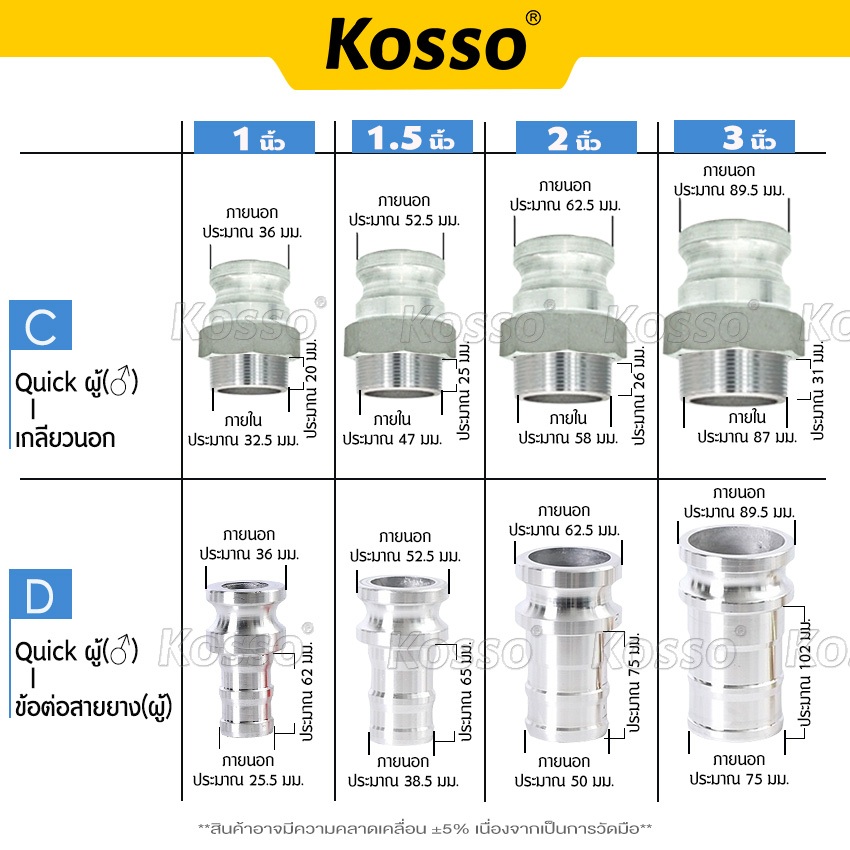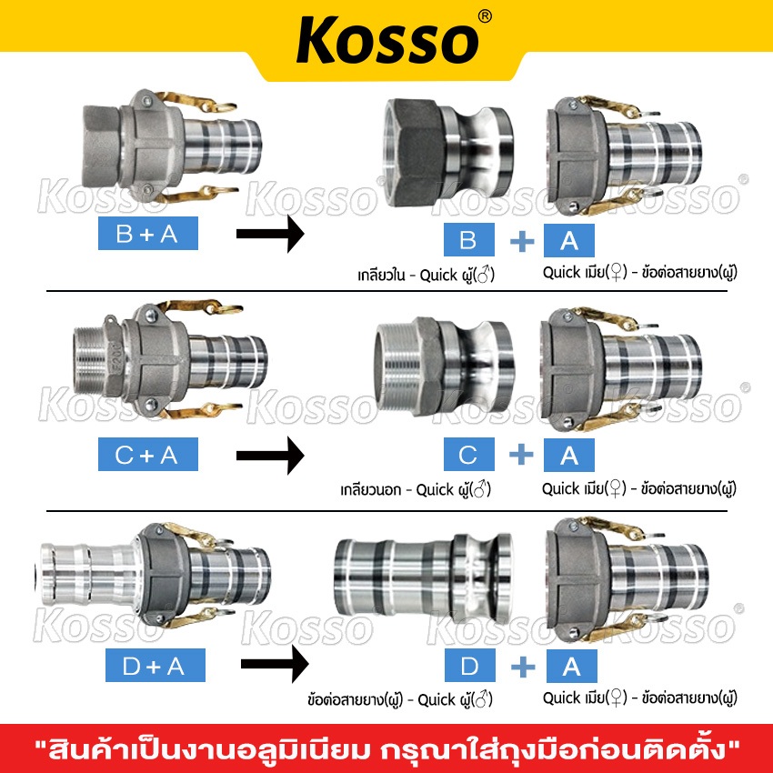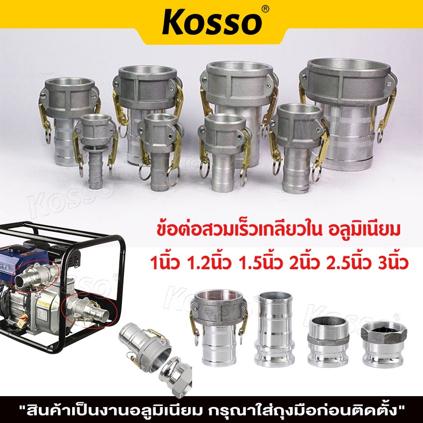 ส่งด่วน Kosso ข้อต่อสวมเร็ว อลูมิเนียม ไม่ต้องขัน (1ชิ้น) ตัวผู้ตัวเมีย ขนาด 2/ 3นิ้ว สายดับเพลิง สายส่งน้ำ