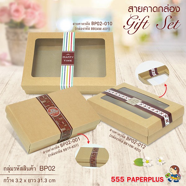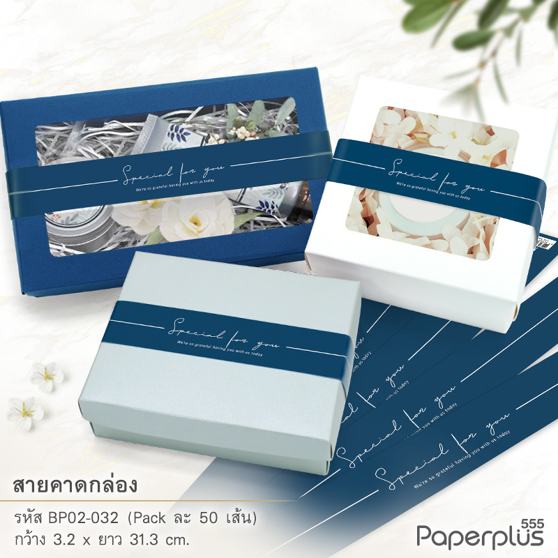 555paperplus สายคาดกระดาษ3.2x31.3ซม.(50เส้น) (ไม่ใช่สติ๊กเกอร์) BP02 สายคาดกล่องขนม กล่องของขวัญ สายคาดกล่องอาหาร