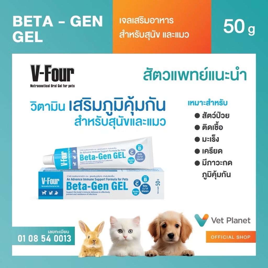 V-Four อาหารเสริมวิตามินสำหรับสัตว์เลี้ยง บำรุงสุขภาพ มี บำรุงเลือด บำรุงตับ กระตุ้นภูมิ ขนาด 50g
