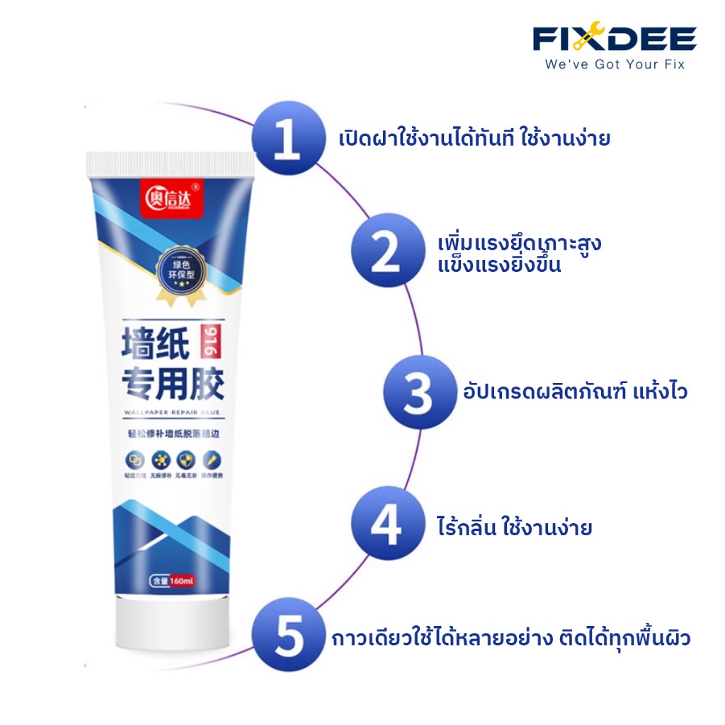Fixdee กาวซ่อมวอลเปเปอร์ วอลหลุดลอก รอยต่อแยก แห้งไว ไม่มีคราบ ไม่มีกลิ่นฉุน