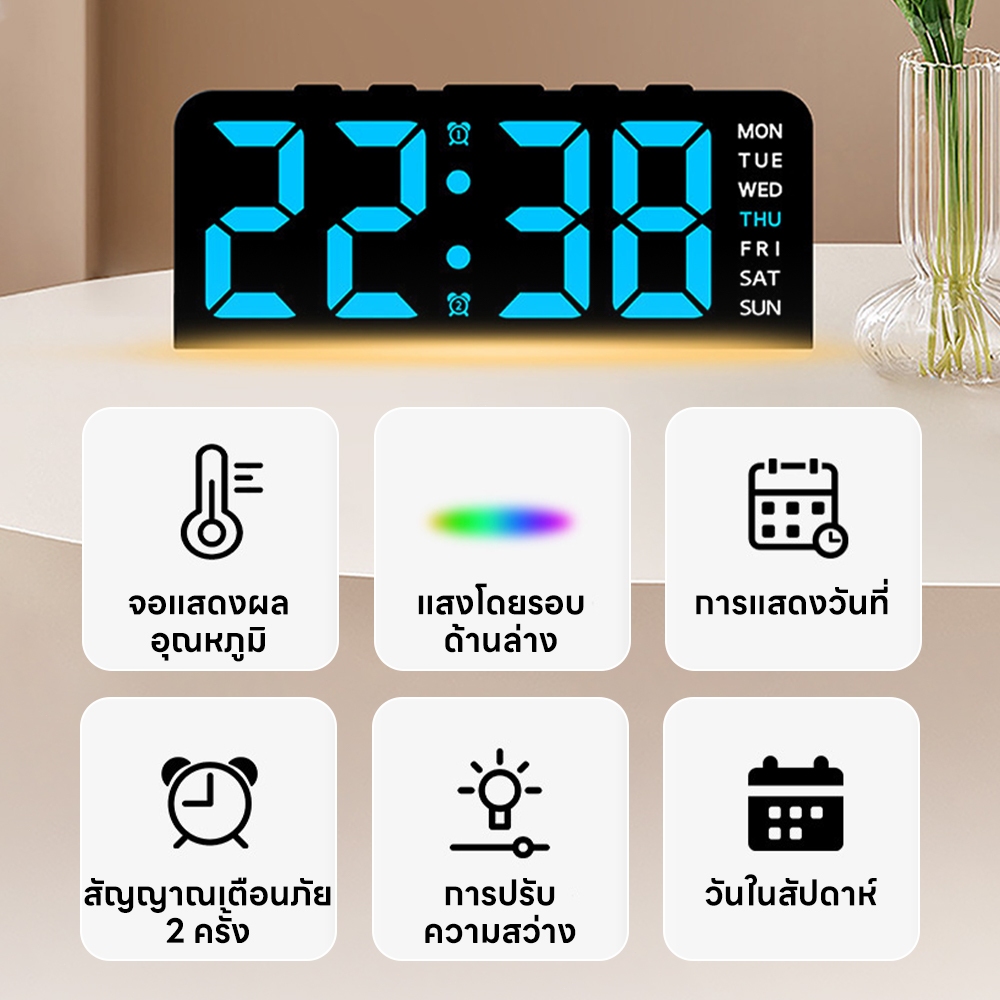INSMART นาฬิกาอิเล็กทรอนิกส์มัลติฟังก์ชัน ปรับความสว่างได้ 4 ระดับ แสดงอุณหภูมิ จอแสดงผล LED 2 โหมด