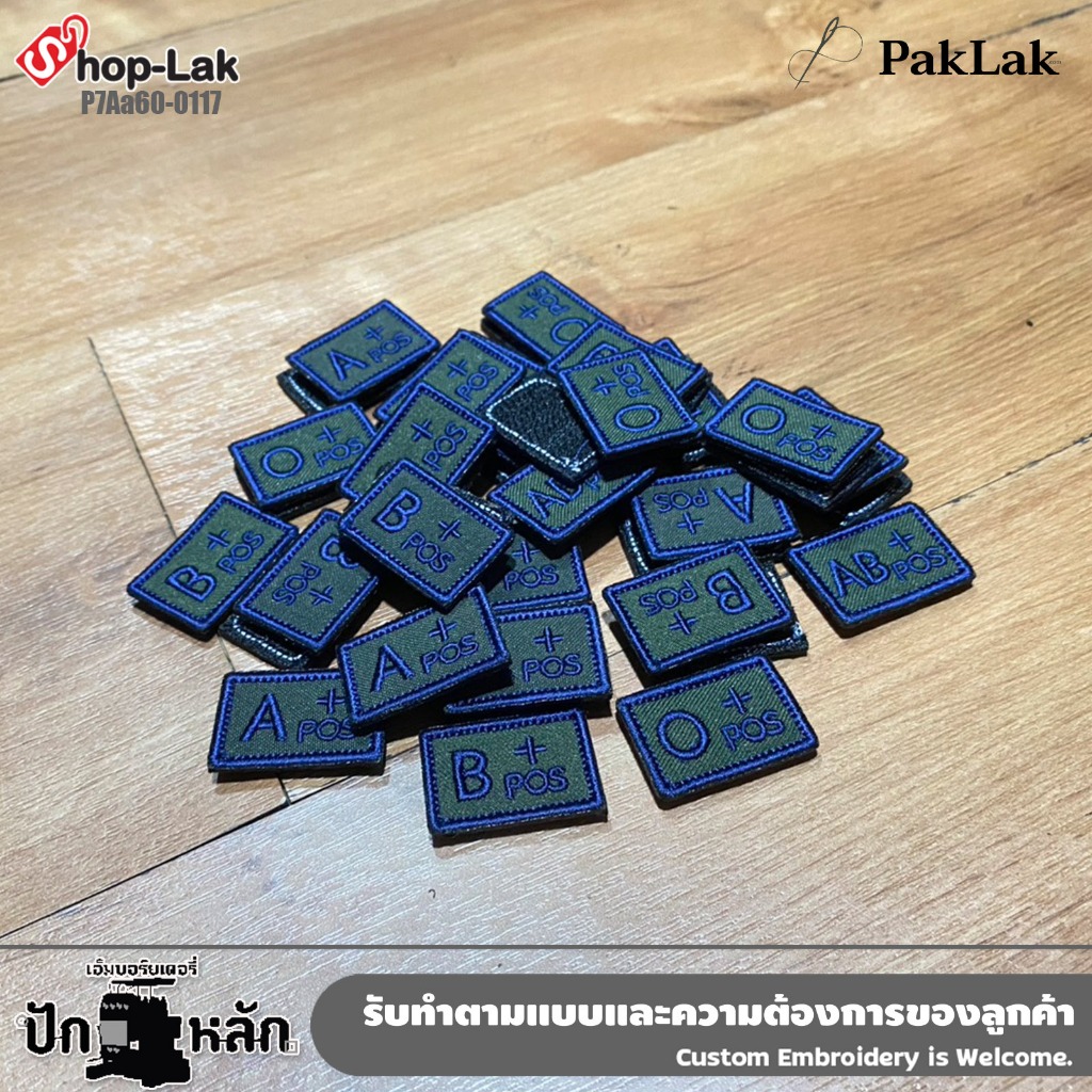 ป้ายผ้าแบบตีนตุ๊กแก ปักกรุ๊ปเลือด ทหารบก | A+ B+ O+ AB+ | ติดเครื่องแบบ ตามระเบียบใหม่ ขนาด 3 x 2 cm
