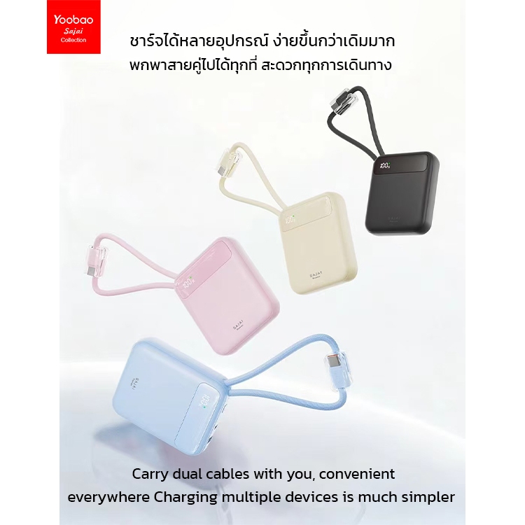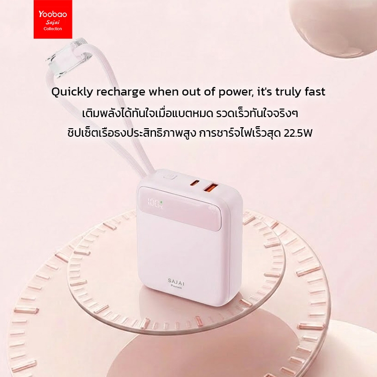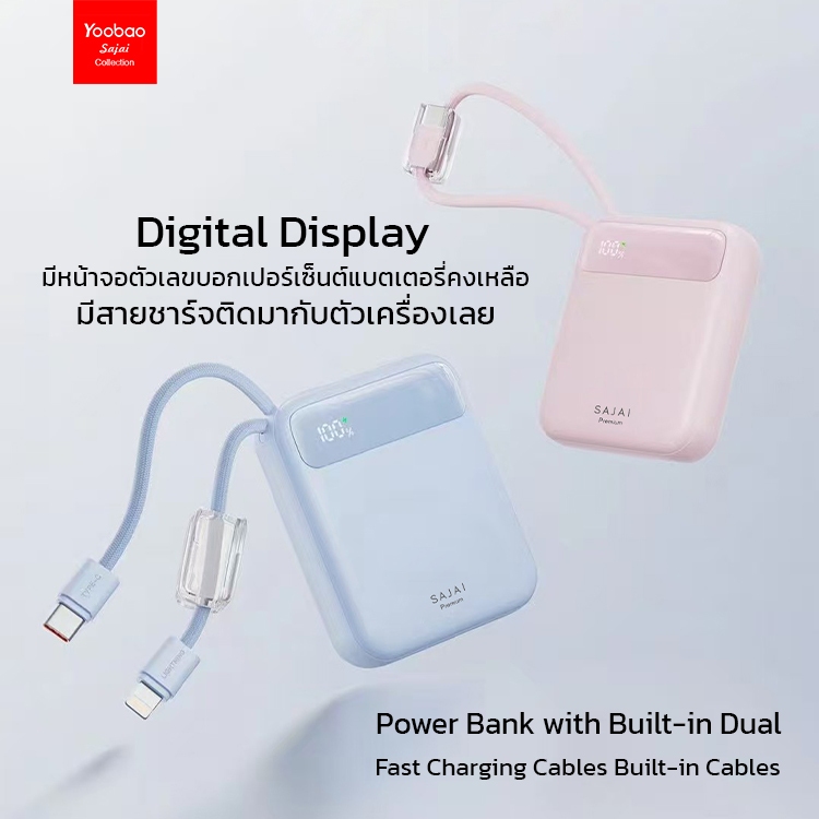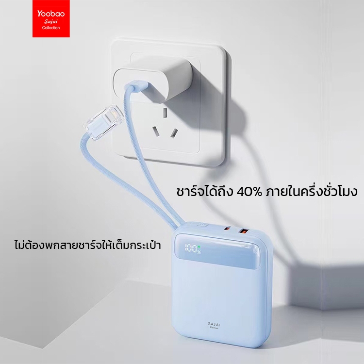 ประกัน1ปี (CCC) SAJAI PD18 10000mah PD22.5W มีสายในตัว2สาย C-L สายCชาร์จเข้า ชาร์จออกได้ Powerbank