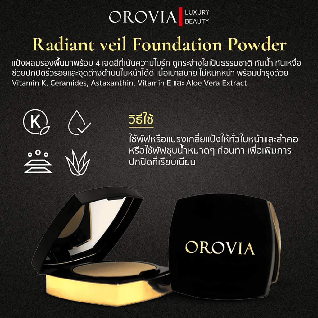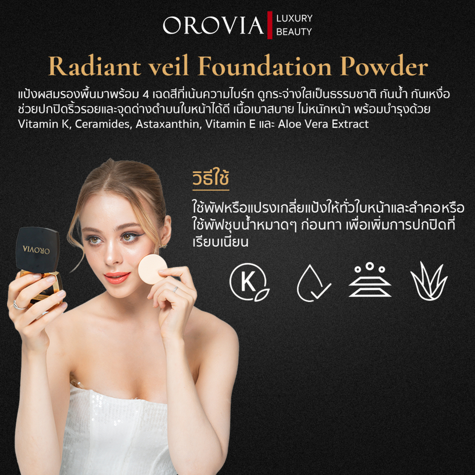 แป้งโอโรเวีย แป้งพัฟผสมรองพื้น OROVIA RADIANT VEIL FOUNDATION POWDER 10 กรัม คุมมัน กันน้ำ