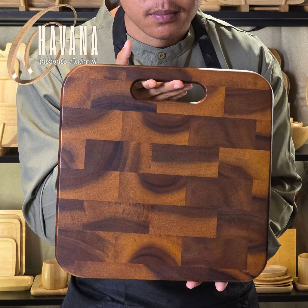 เขียงไม้เอนเกรนมินิ รูปทรงกระเป๋า ขนาด 12 นิ้ว X 12 นิ้ว หนา 1.5 cm เขียงไม้แท้ไม้ฉำฉา J104