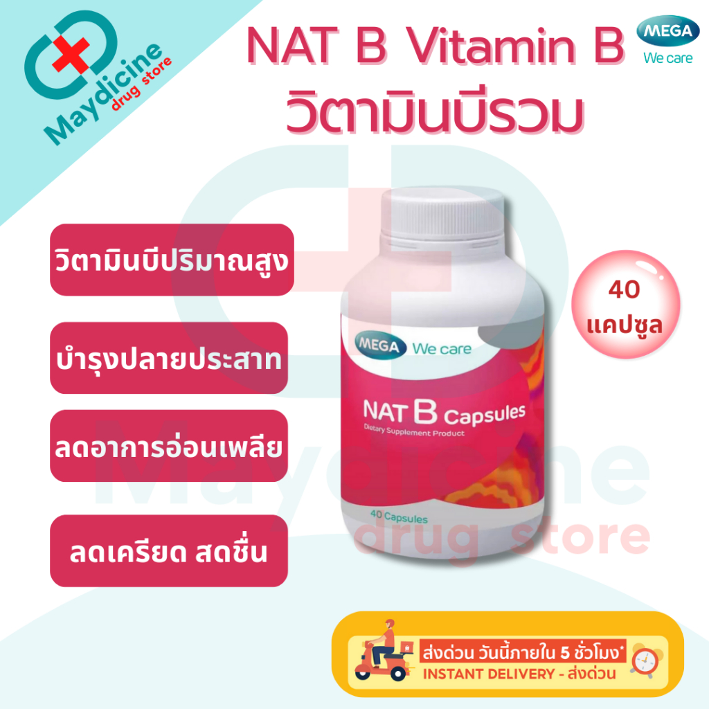 Mega Nat B แนทบี วิตามินบีรวม เมก้า วีแคร์ บำรุงระบบประสาท 40/100 แคปซูล