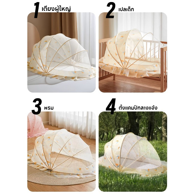 พร้อมส่ง💕มุ้งครอบเด็กแบบพกพา พับได้ หมีน้อยน่ารัก/กระต่าย มีม่านบังแสง ป้องกันยุงและแมลง 360°