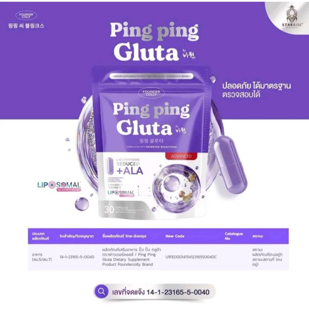 PingPing Gluta Product Foundercolly Brand กลูต้าปิ๊งปิ๊งแบบอัดเม็ด [ 1 ห่อ 30 แคปซูล ]