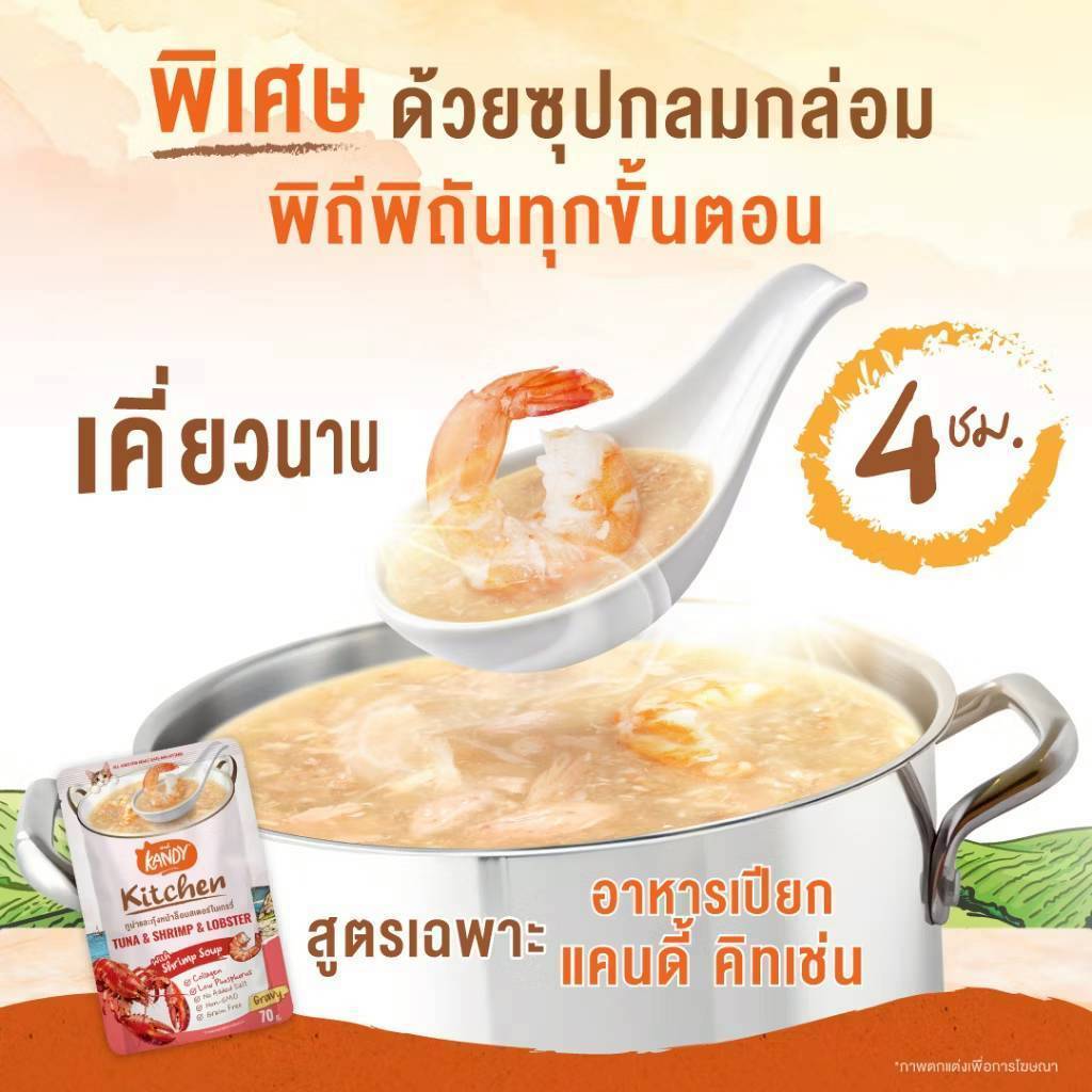 Kandy Kitchen แคนดี้คิทเช่น 12 ซอง อาหารเปียกแมว ขนาดซองละ 70 กรัม น้ำซุปหอมทานง่ายเนื้อเน้นๆ