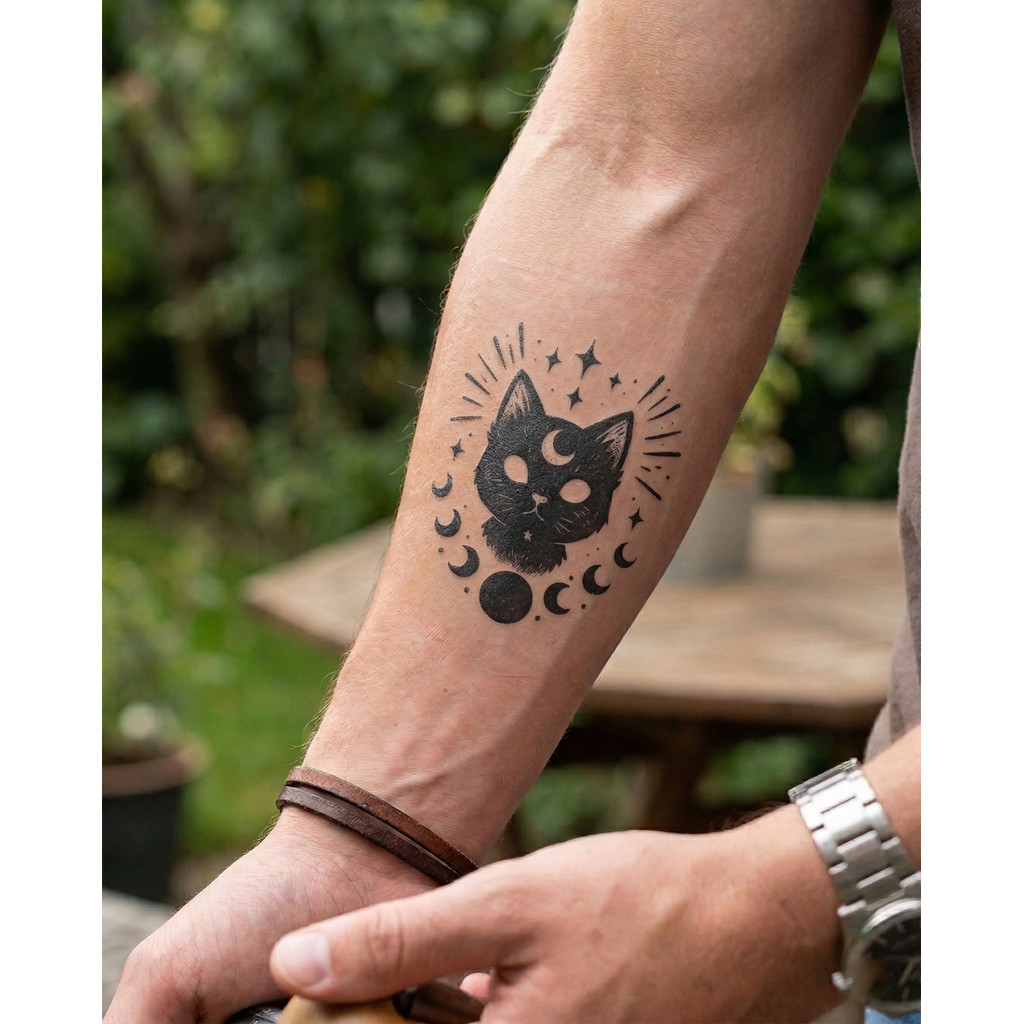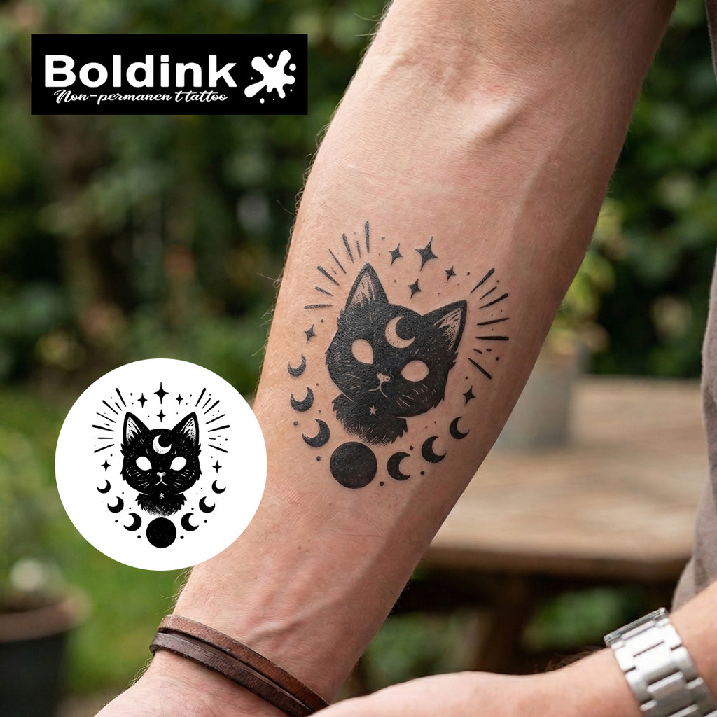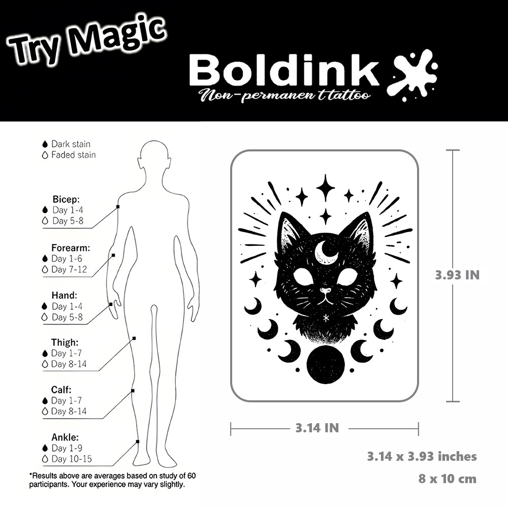Boldink Magic Tattoo New กันน้ำ สมจริงจากสมุนไพร สติกเกอร์ชั่วคราวลายเสือป่าน่ารัก Moon Cat ขนาด 8 และ 10 ซม.
