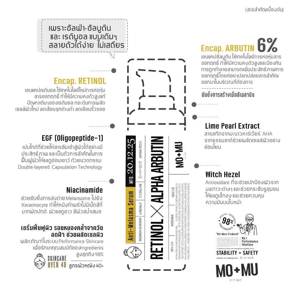 MO+MU(โมแอนด์มู) Retinol x Arbutin6% Serum for Womenไนท์เซรั่มฟื้นฟูผิว ลดรอยหมองคล้ำจากวัย ฝ้า ออกแบบสำหรับผิวหญิง 40+