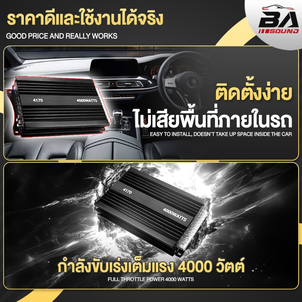 BA SOUND เพาเวอร์แอมป์ Class D 4CH. 4000W รับประกัน 1 ปี BA-4170 เพาเวอร์แอมป์ขับซับ แอมป์ขยายเสียง เครื่องเสียงรถยนต์