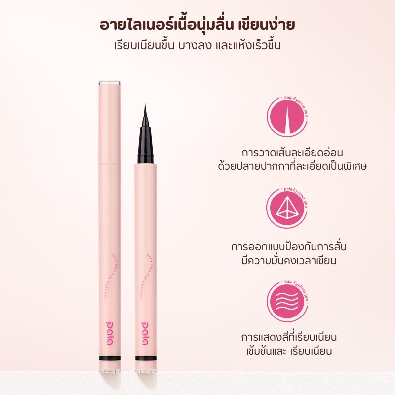 PALA อายไลเนอร์ VERY FINE EYE EYELINER หัวพู่กัน เส้นคมชัด ติดทน กันน้ำ 0.5 ml / 0.01 FL OZ แบรนด์ไทย มีอ.ย.