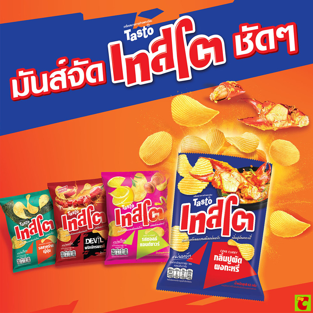เทสโต มันฝรั่งทอดกรอบแผ่นหยัก กลิ่นปูผัดผงกะหรี่ 69 ก.