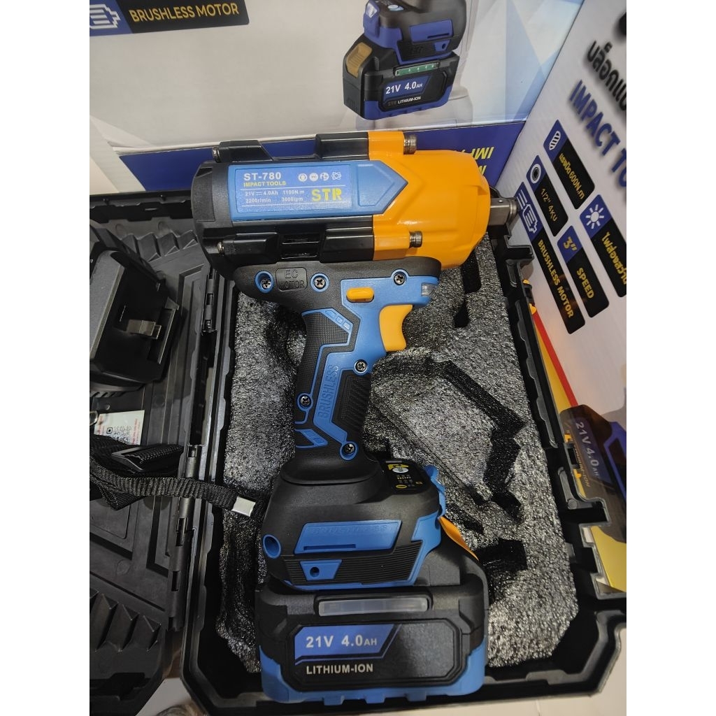 STR บล็อกไร้สายแบต ST-780 1100 Nm แบตเตอรี่ 21V 4.0Ah 1/2" ครบชุดแบตเตอรี่2แท่นชาร์จ1 มีรับประกัน