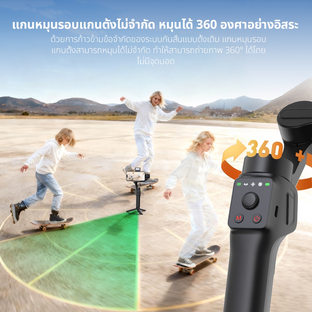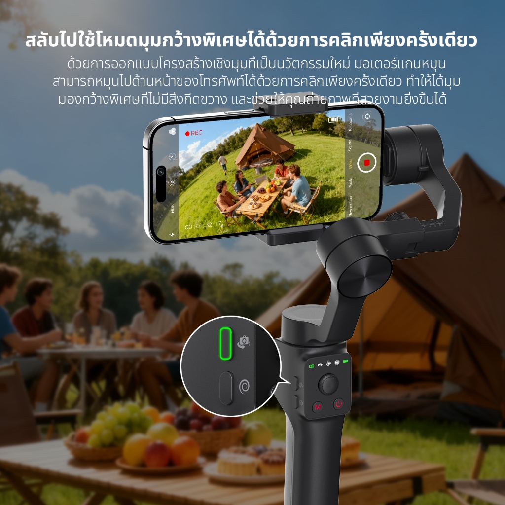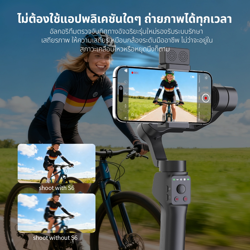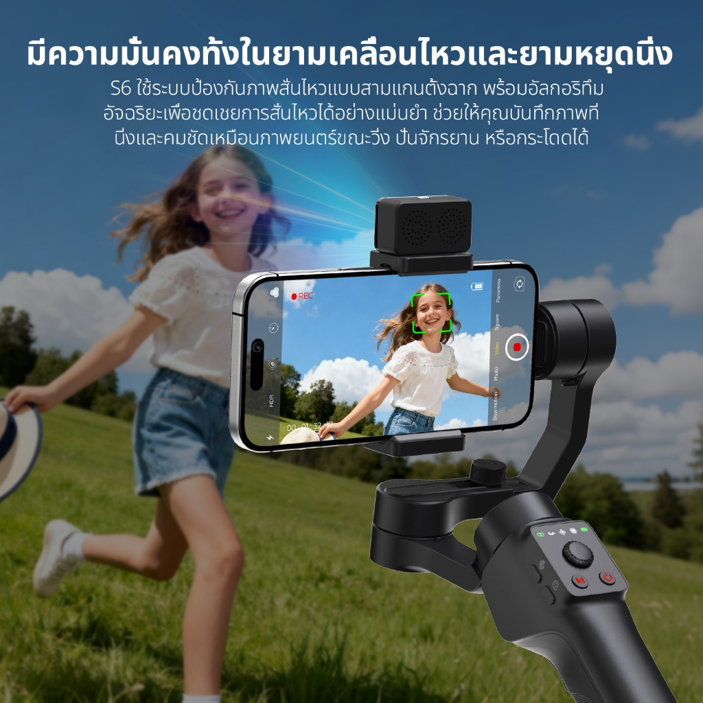 QAML S6 AI Gimbal กันสั่น 3 แกน พับได้ มาพร้อมไฟ LED ไม้กันสั่นสำหรับสมาร์ทโฟน Gimbals Stabilizers
