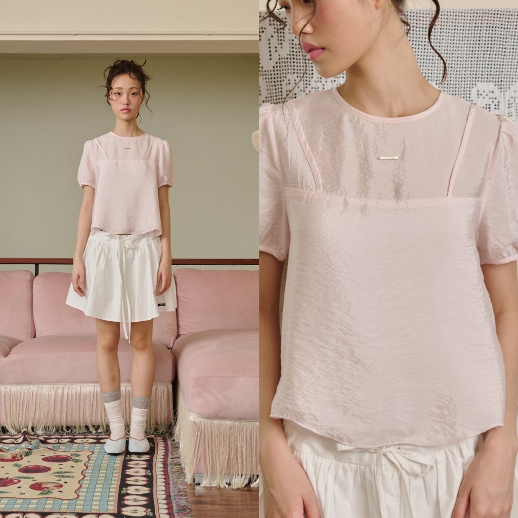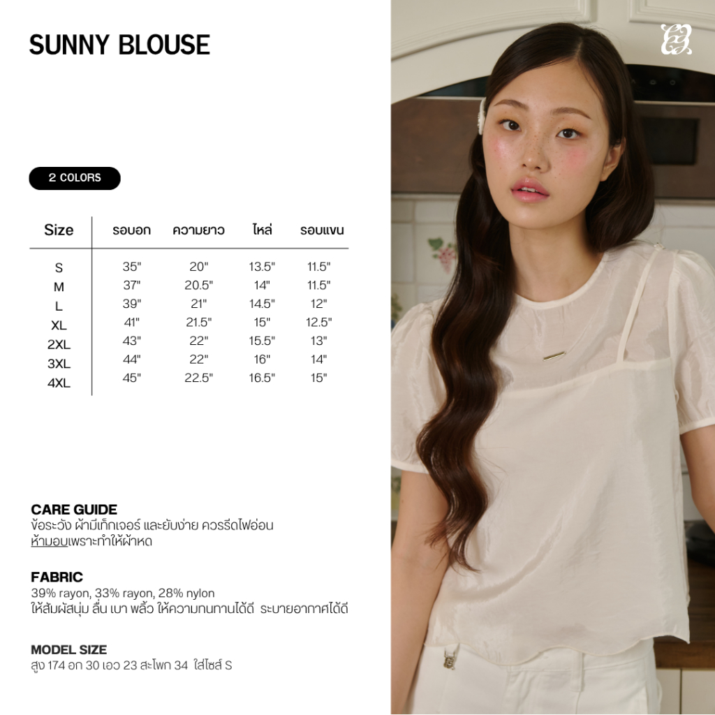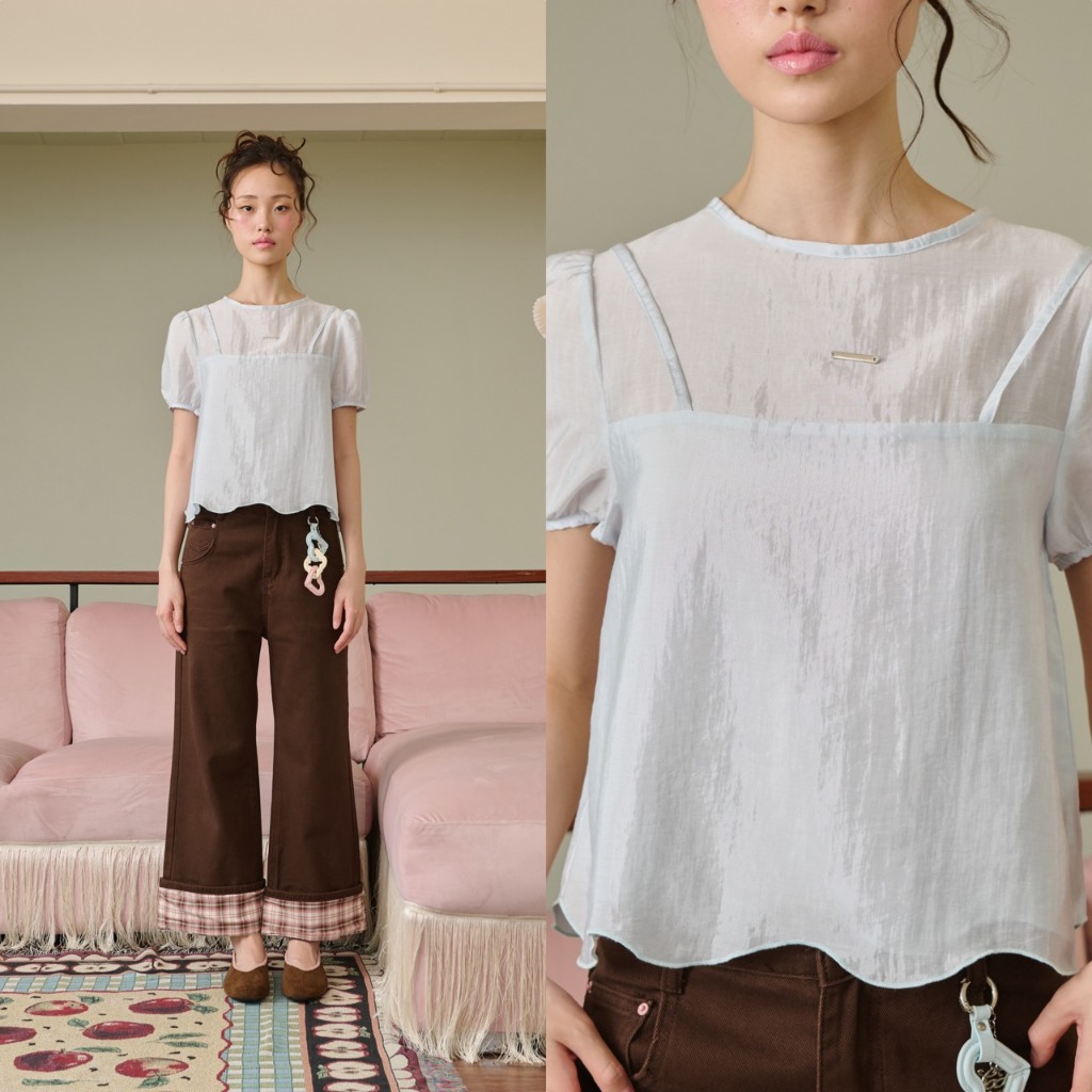 CHUUCHOP - (S-4XL) Sunny Blouse เสื้อเบลาส์ 2 เลอเยอร์ ผ้านุ่มลื่น (C8488)