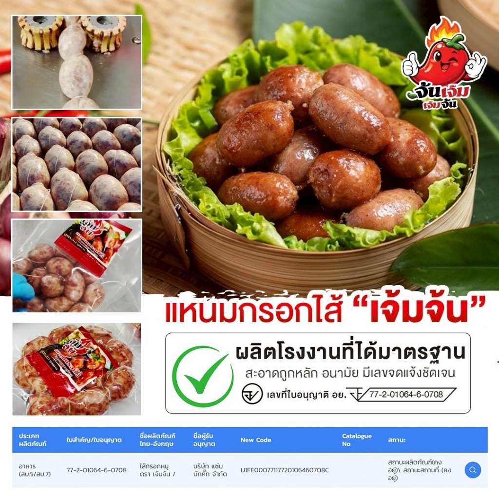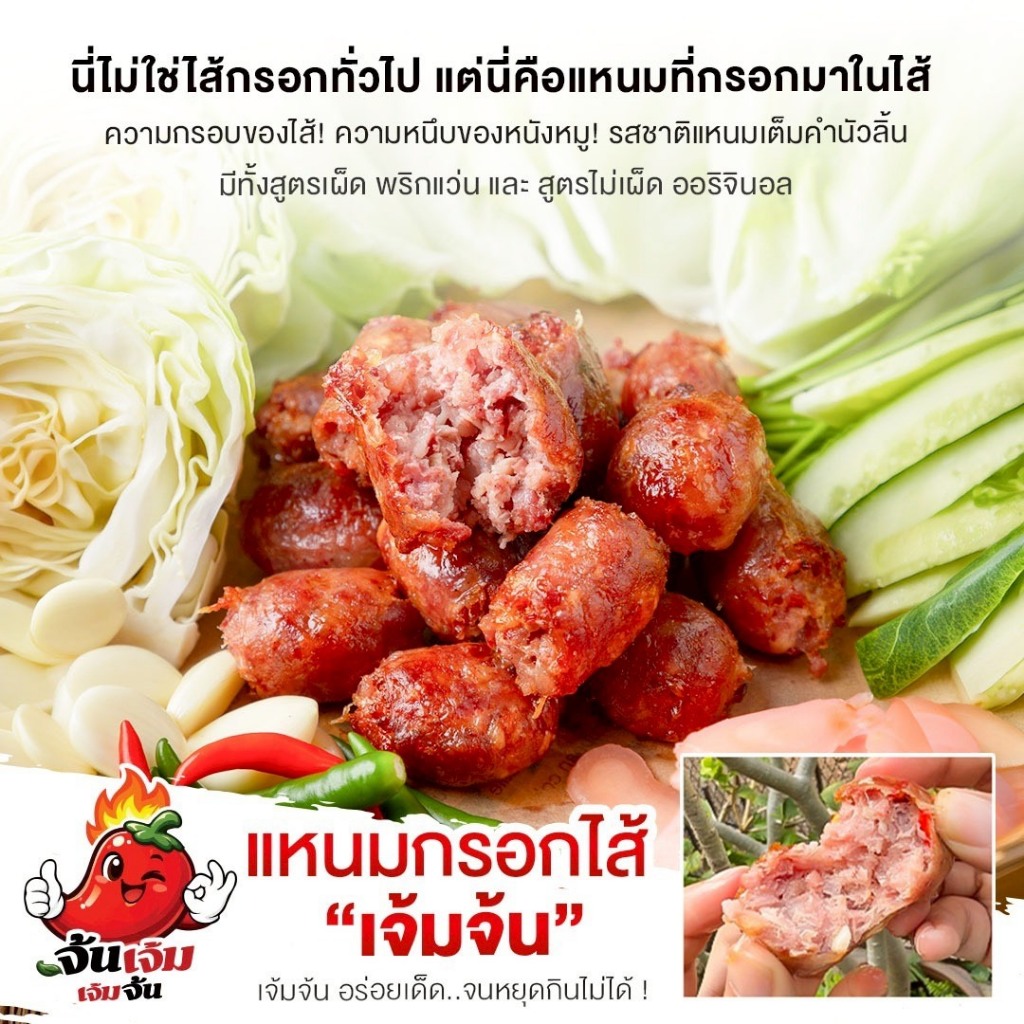 แหนมกรอกไส้ ตราเจ้มจ้น สูตรคุณยาย เนื้อแน่น สดใหม่ สะอาด [ไส้กรอกแหนม แหนม ไส้กรอกอีสาน] รวมทุกโปร