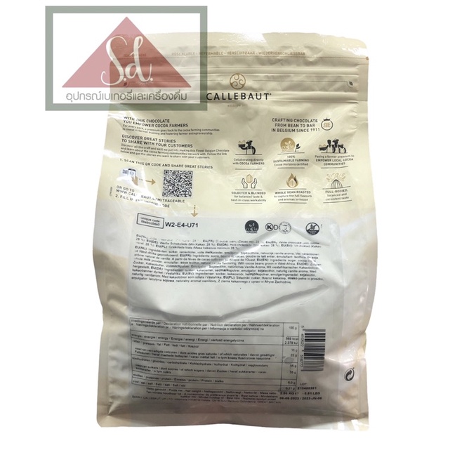 **ไม่รับคืน/เคลมทุกกรณี** ช๊อคโกแลต callebaut white couverture 28% ขนาด 2.5kg (อ่านรายละเอียดก่อนสั่งซื้อ)