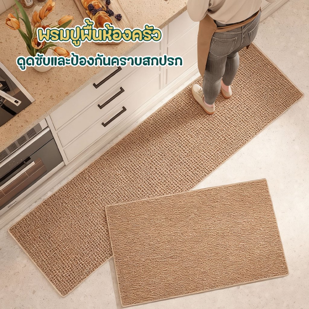 พรมห้องครัว พรมปูพื้นผ้าลินินธรรมชาติ พรมครัวพรมยาว กันลื่น วัสดุป่านทอ ดูดซับน้ำและน้ำมัน ใช้งานในครัว
