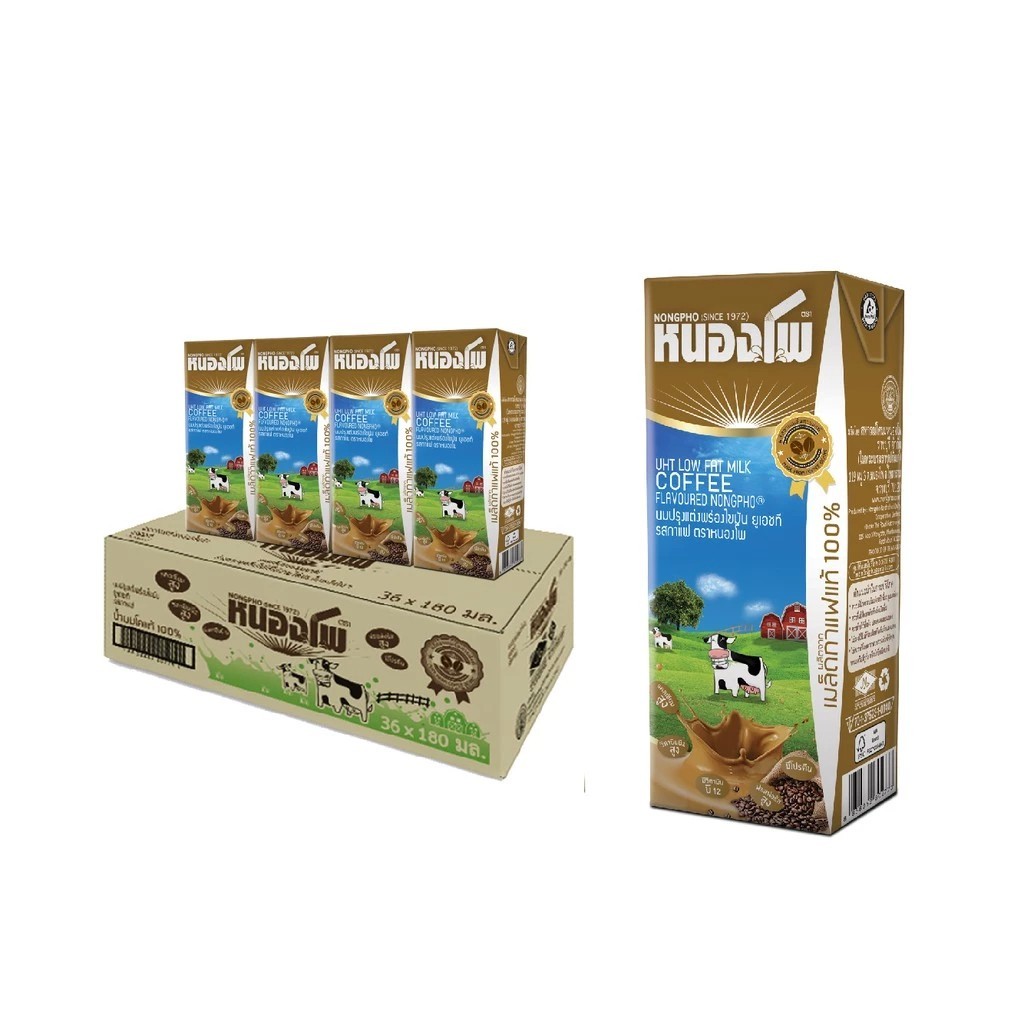 นมหนองโพ นมโคแท้100% นมยูเอชที รสกาแฟ180ml (36 กล่อง/ลัง)